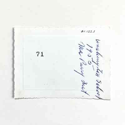 Description: Glossy black/white photo with serrated edges, unmounted. Photographer unknown.