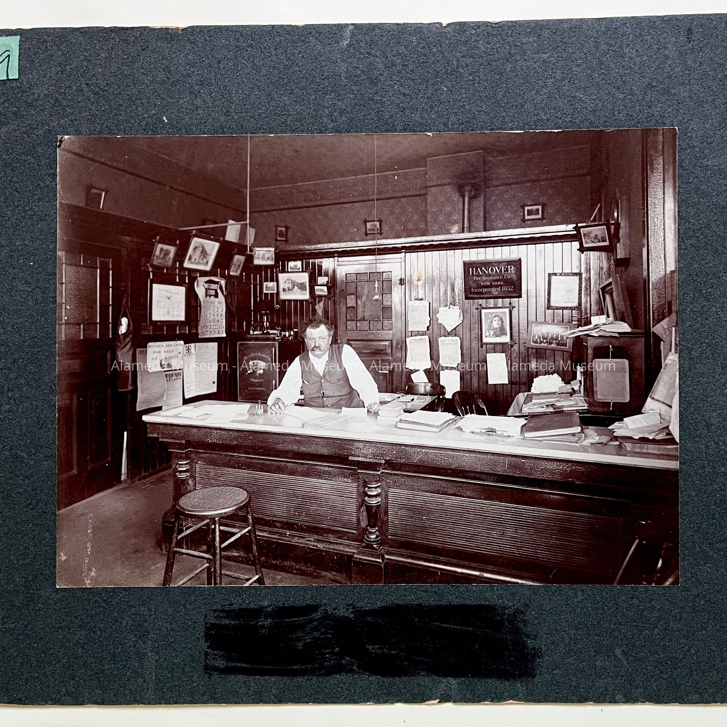 History of Object: View of A.R. Denke inside his real estate office on Webster Street, 1903.