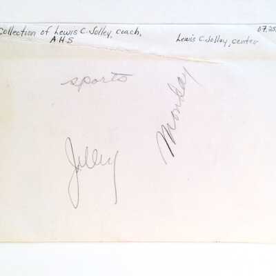 Photo of AHS Coach Lewis C. Jolley and four athletes, prior 1957Entry/Object ID
