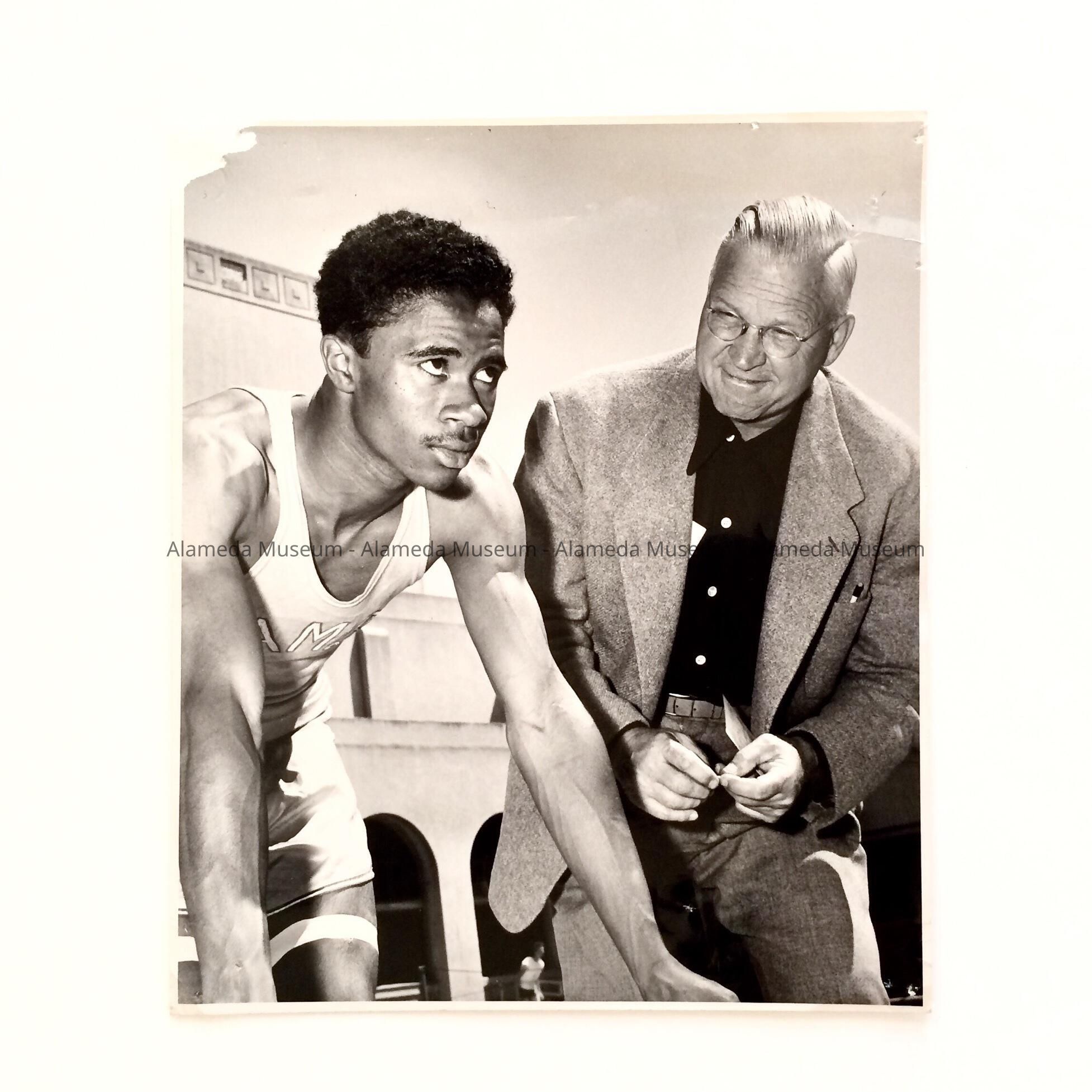 Photo of AHS sprinter Herbert Turner and Coach Jolley, 1952Entry/Object ID