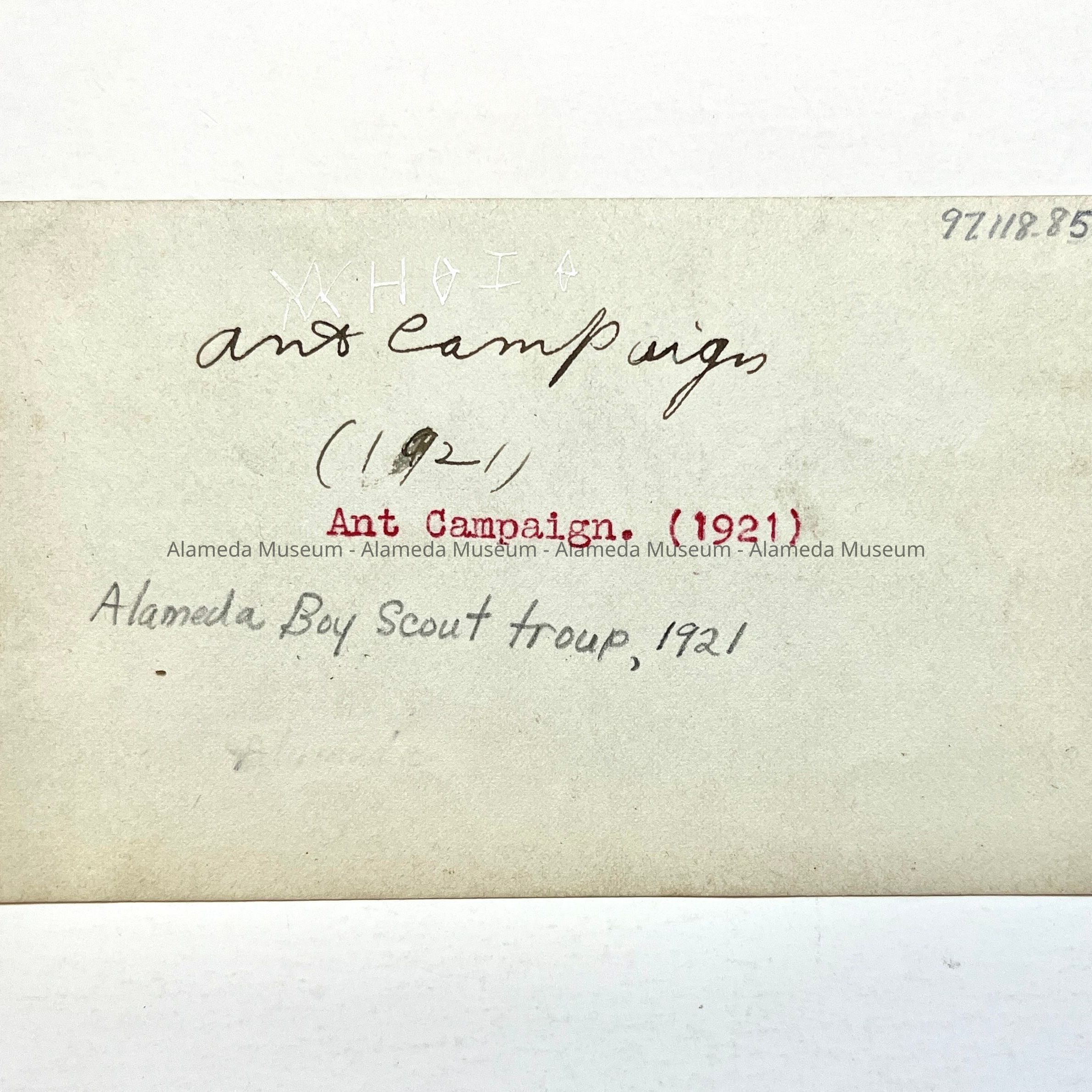 Photo of Alameda Boy Souts during the Ant Campaign, 1921Entry/Object ID