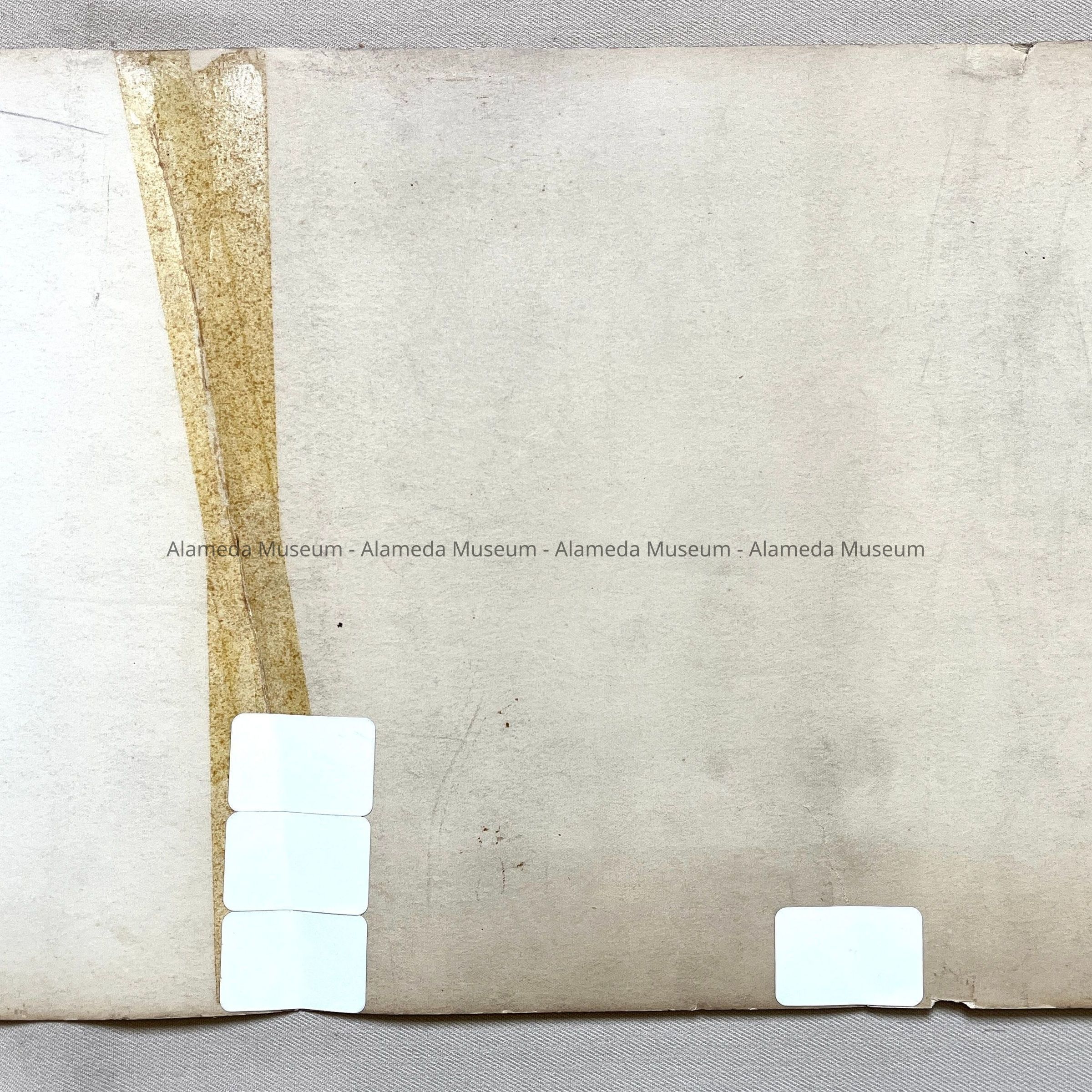 Description: Black/white panoramic photograph, unmounted. Photographer: T.C. Wohlbruck, 251 Post St., S.F. (per information incorporated into the negative). The image is damaged by a vertical full-length midpoint crease, a 2-in. vertical tear beginning at the bottom margin about 9-in. from the left edge. Several minor tears and chipping are found along the margin.