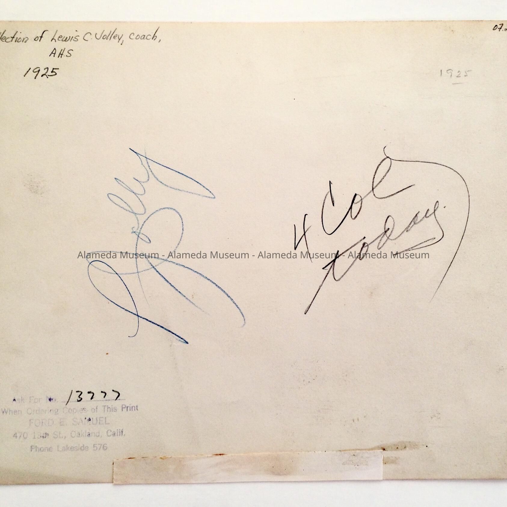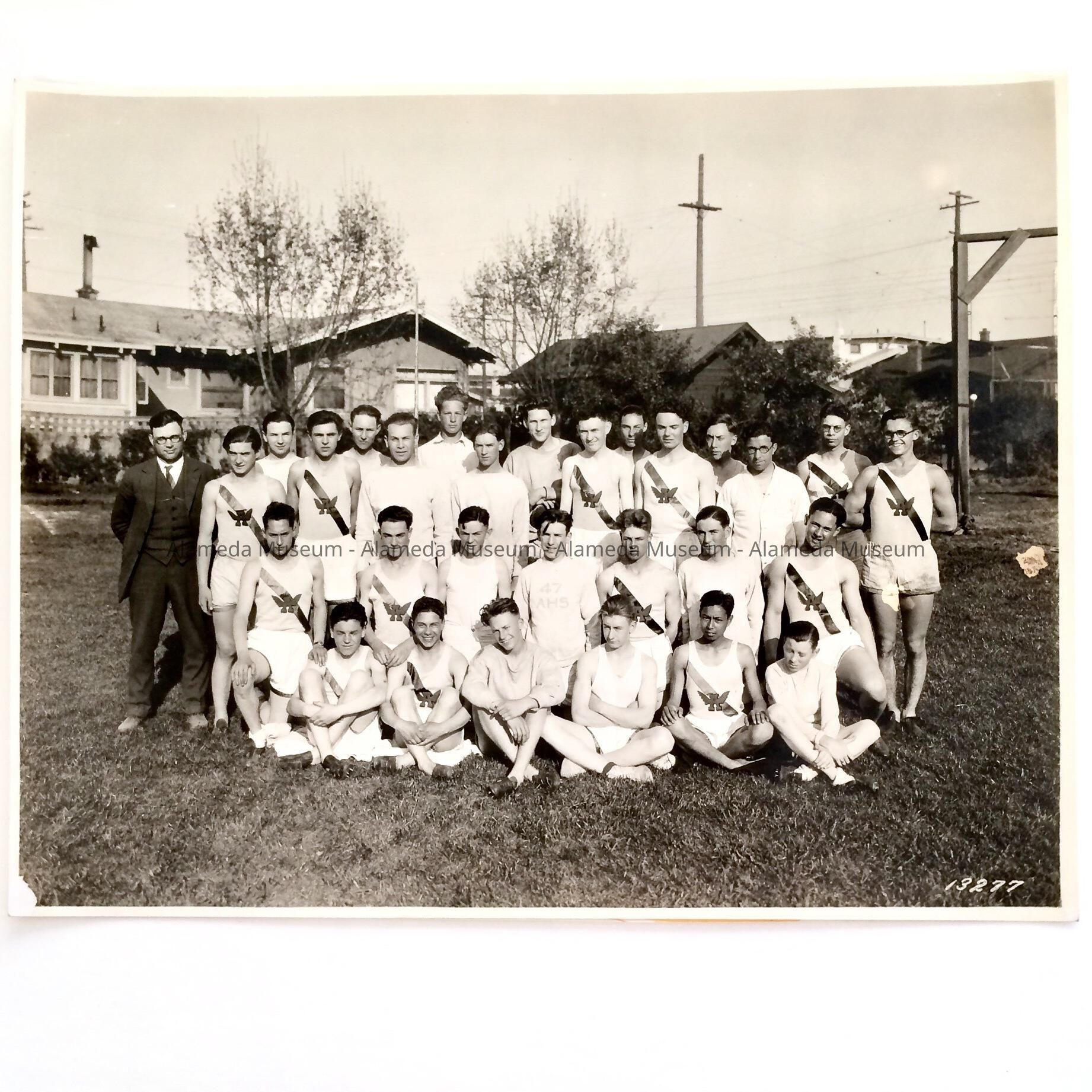 Photo of Alameda High School Track Team members with Coach Jolley, 1925Entry/Object ID