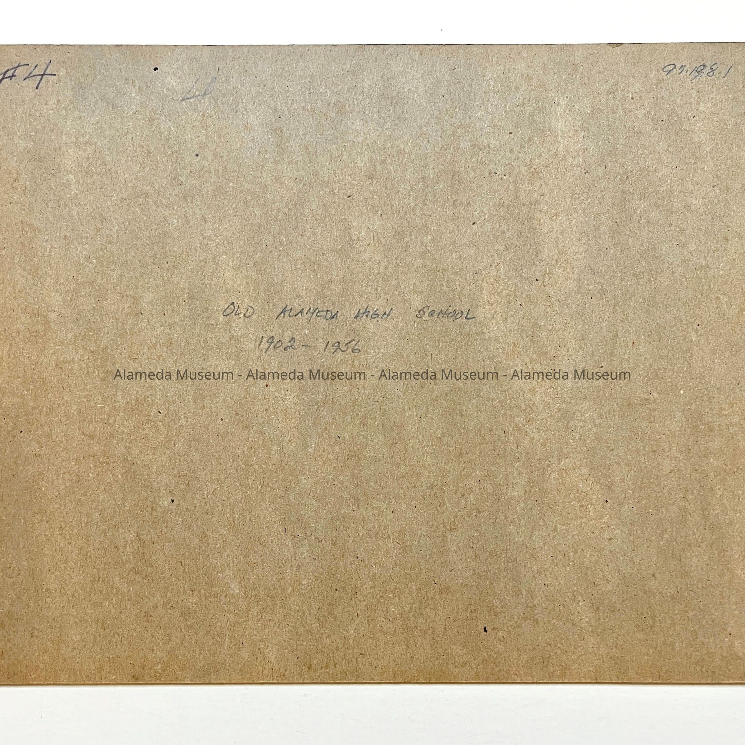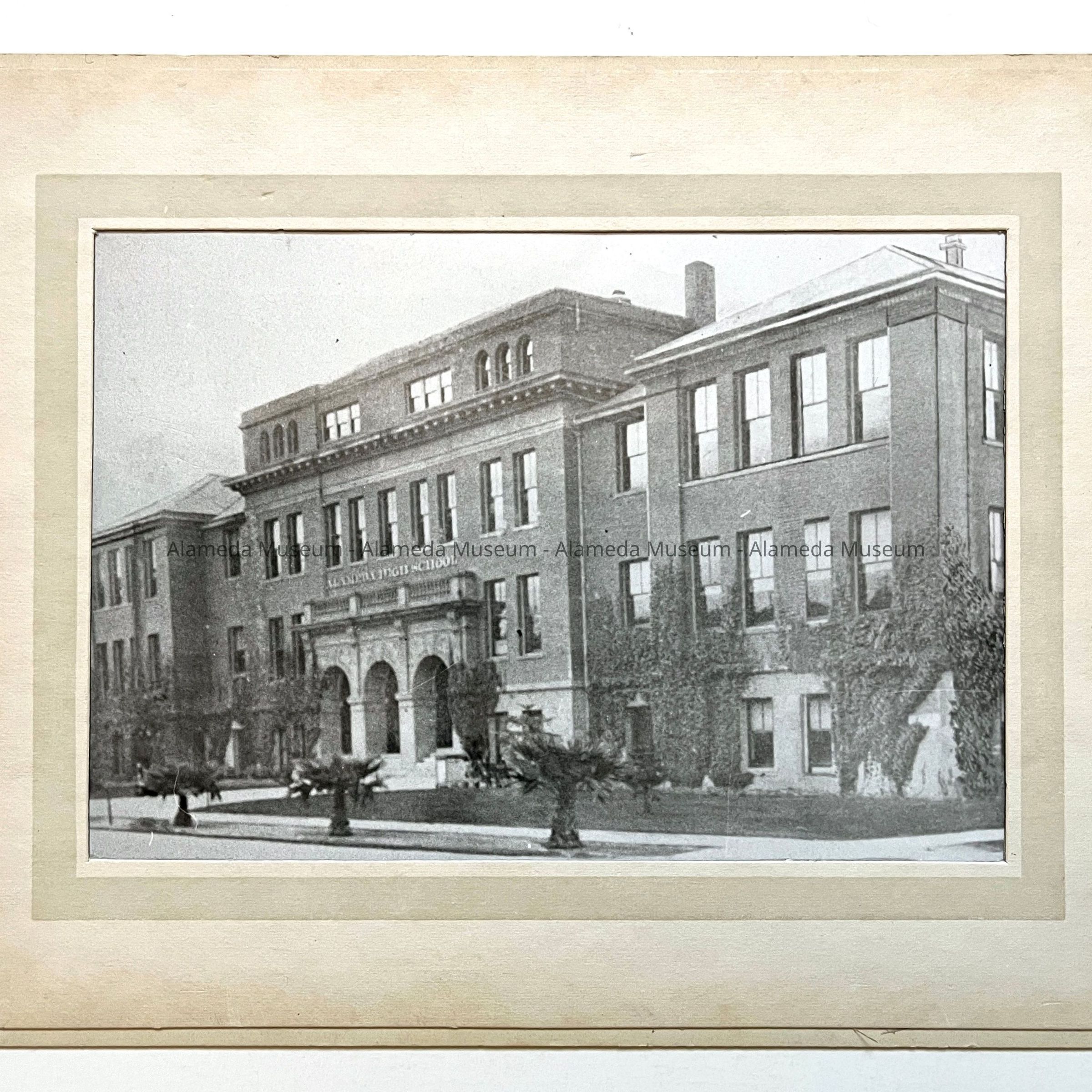 History of Object: View of the old Alameda High School built in 1902, demolished in 1956. It was known as the "West Wing" after the construction of the newer school in the 1930's.