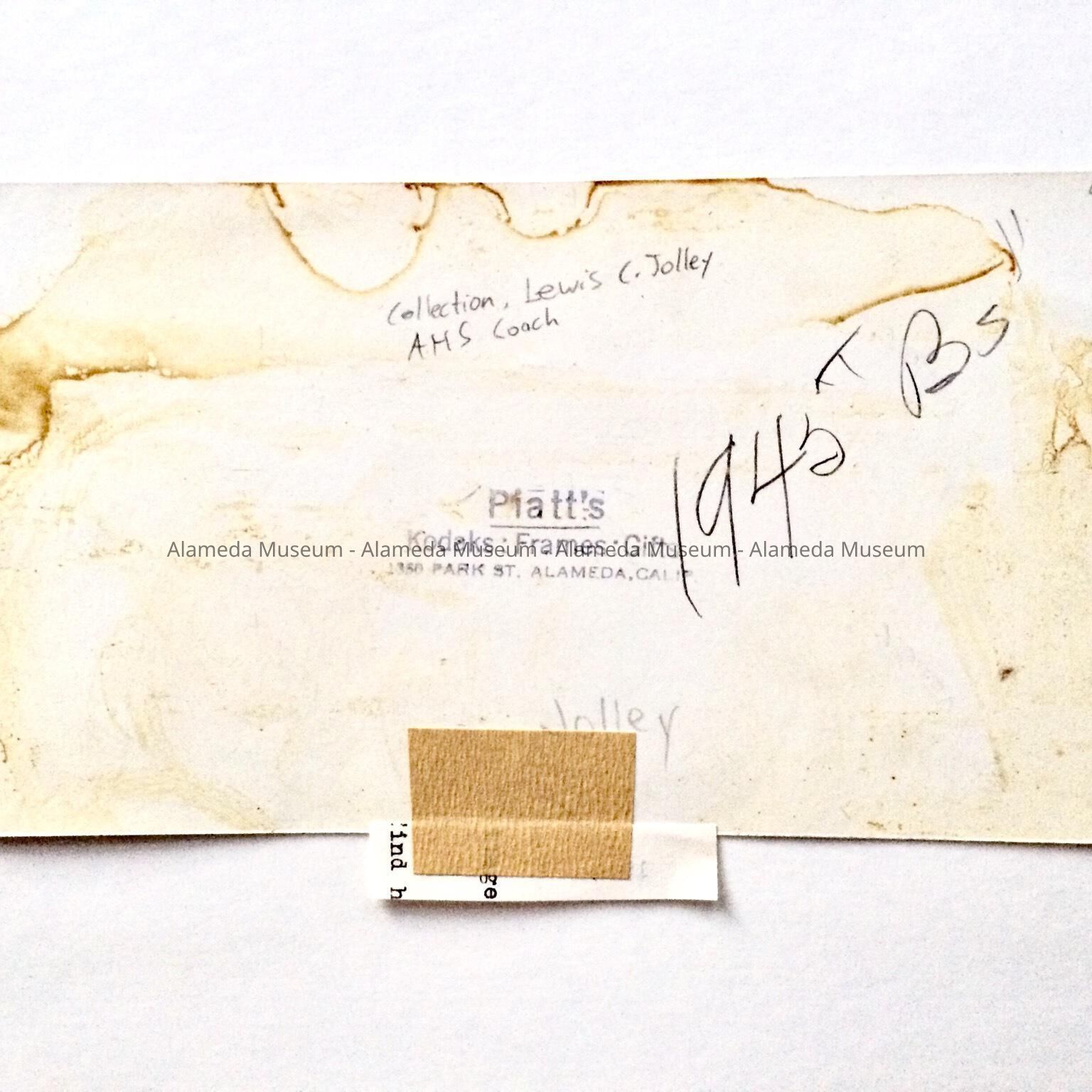 Photo of 'Alameda Hornets' High School Track Team and Coach Jolley, by Piatt's, 1945Entry/Object ID
