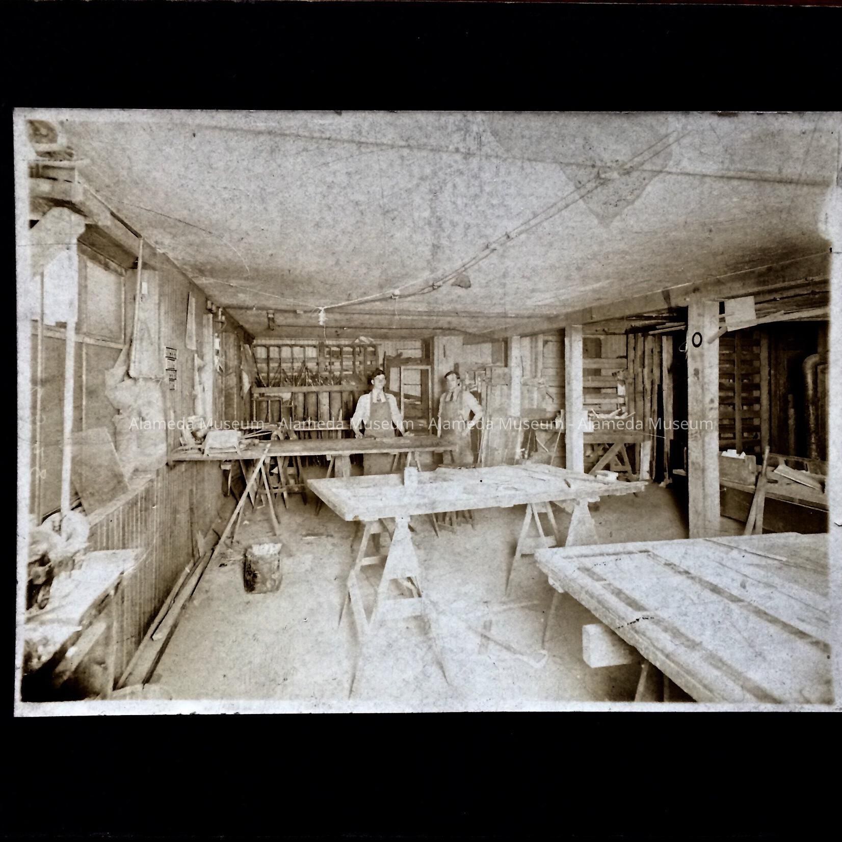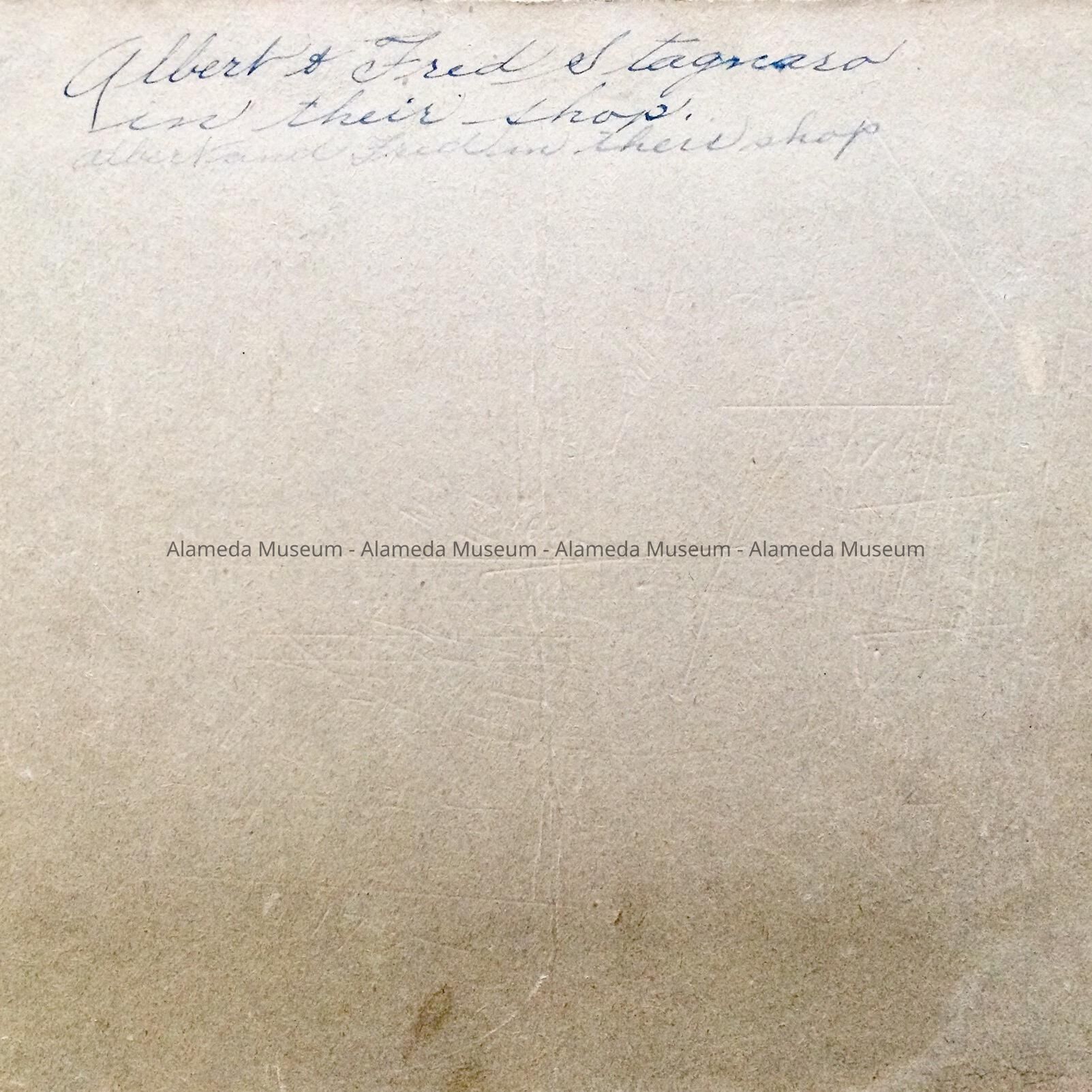 Photo of Albert and Fred Stagnaro working on a glass project, c. pre-1920Entry/Object ID