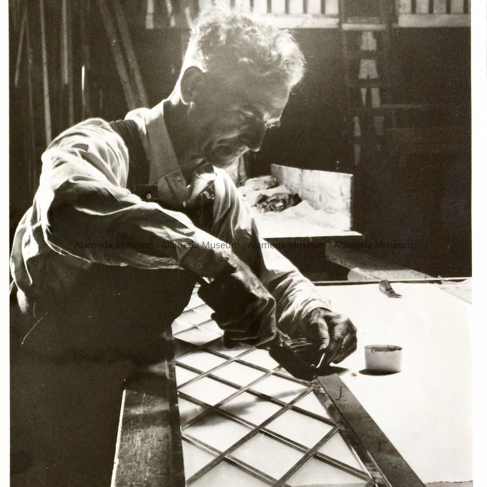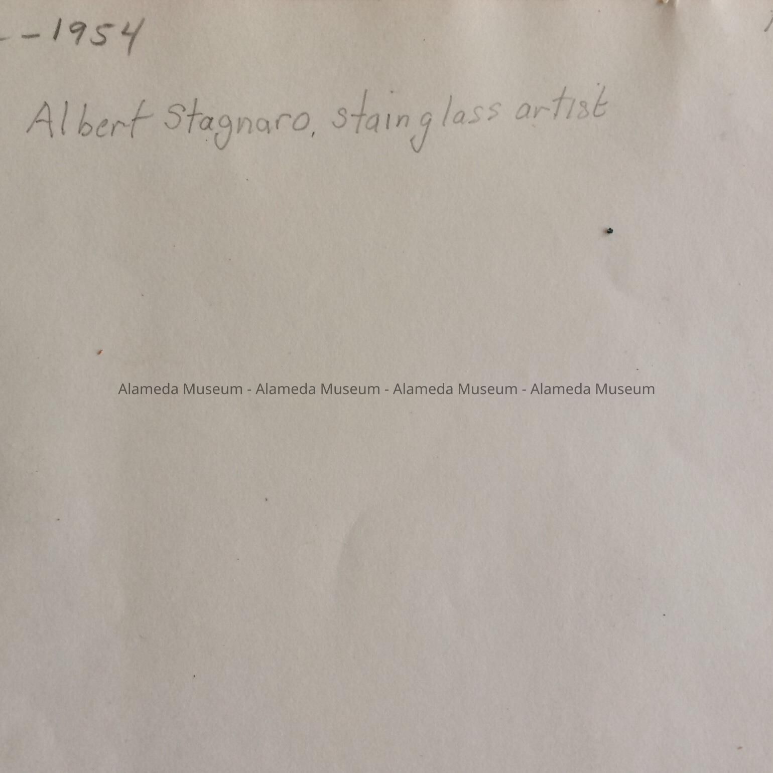 He was born in San Francisco and moved to Alameda with his parents following the 1906 earthquake and fire. He attended Mastick School and began working with glass in 1918 when employed by Delacour Art Glass at 1911 Webster St., Oakland. He later purchased the business, changing its name to Stagnaro Art Glass Works.
