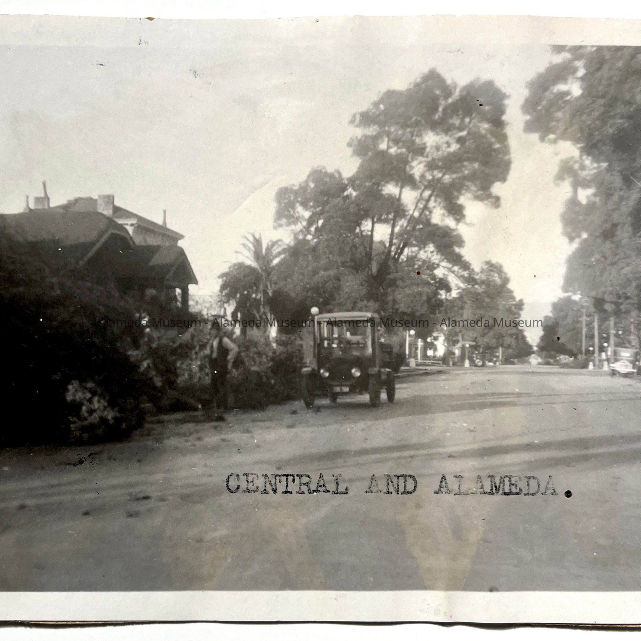 History of Object: An old automobile is shown approaching the intersection of Central and Alameda Avenues.