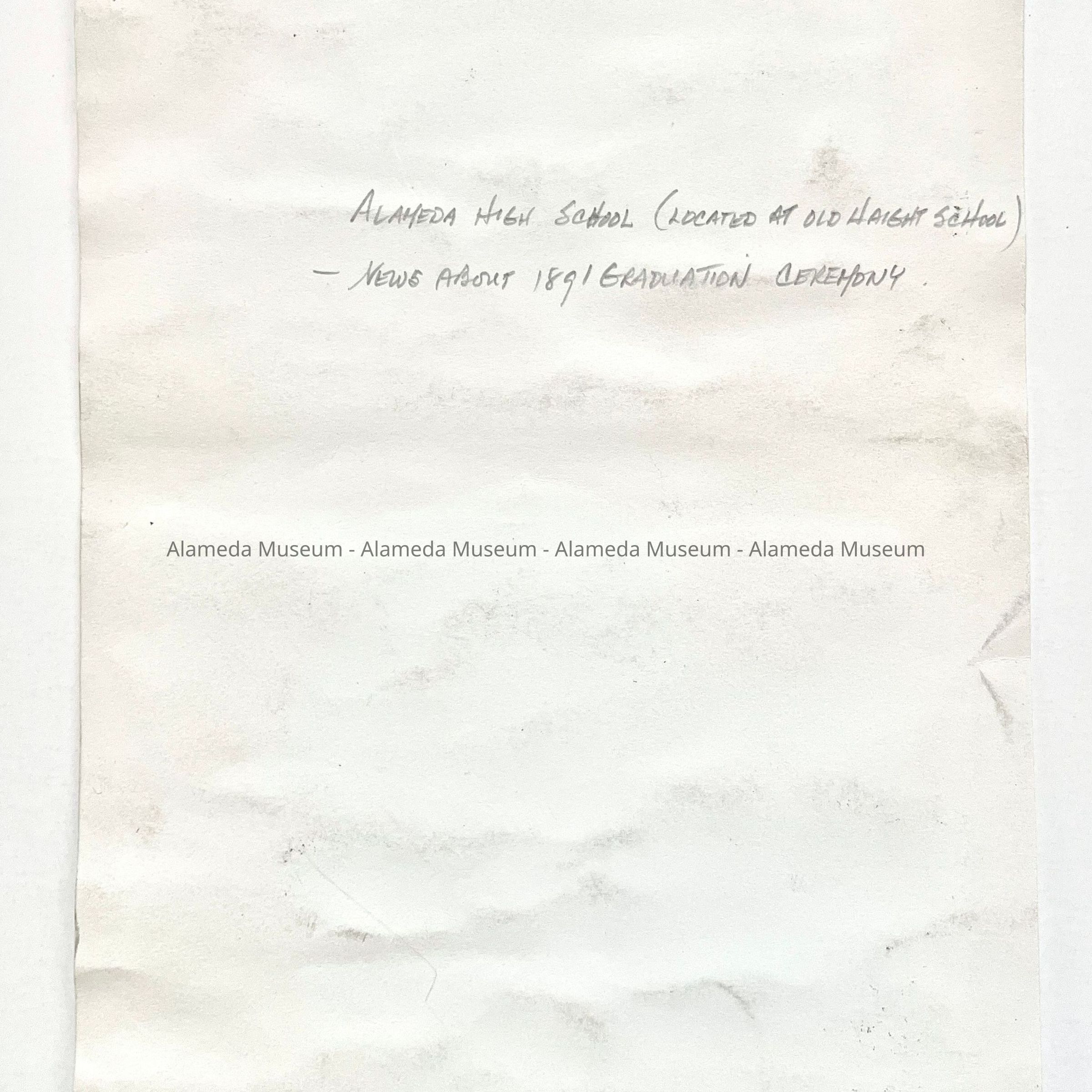 History of Object: A photographed newspaper article which describes the Alameda High School (in Haight School building) graduation ceremony held on Friday, March 27, 1891.