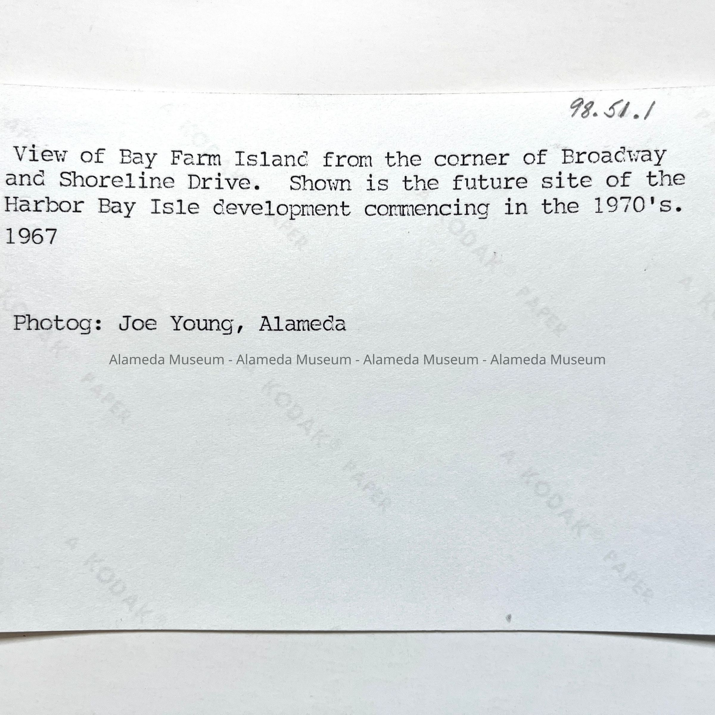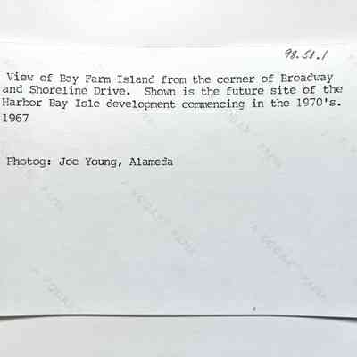 Photo of Bay Farm Island from corner of Broadway and Shoreline Drive, 1967Entry/Object ID
