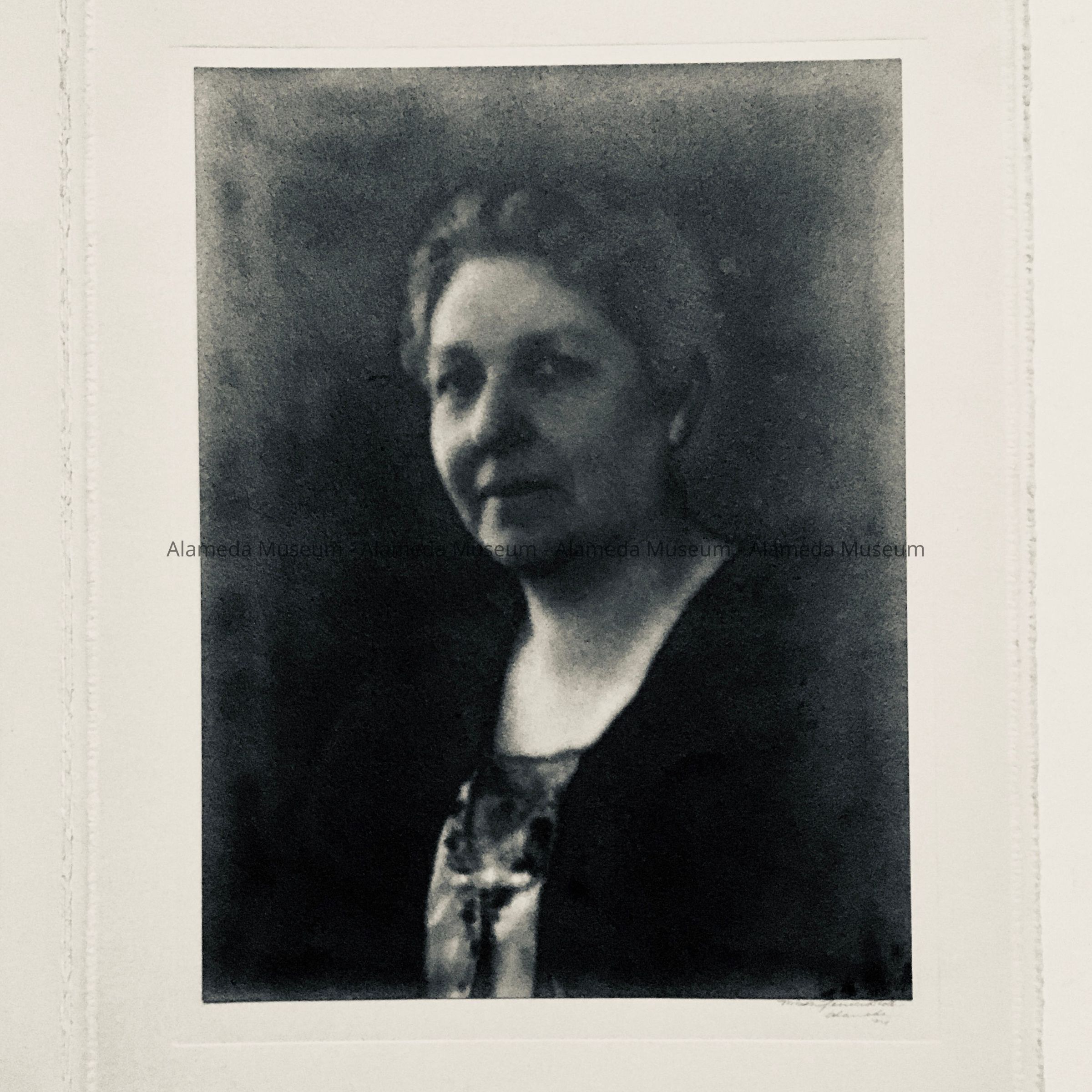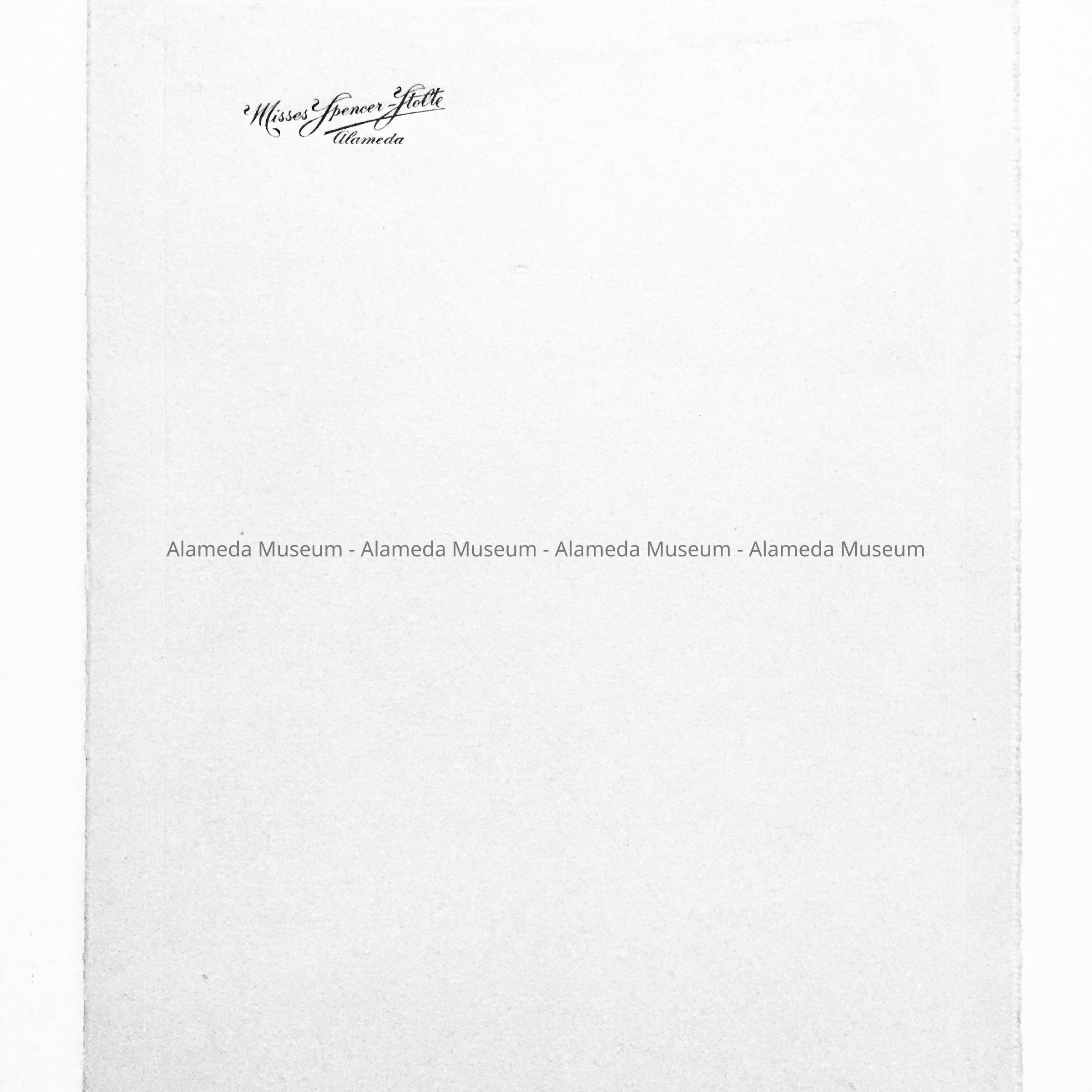 Description: Soft focus black and white image in an original paper studio folder. The cover is signed in gold-colored type, "Misses Spencer-Stolte, Alameda." The lower border of the mounting is signed in pencil, "Spencer-Stolte, Alameda '24."
