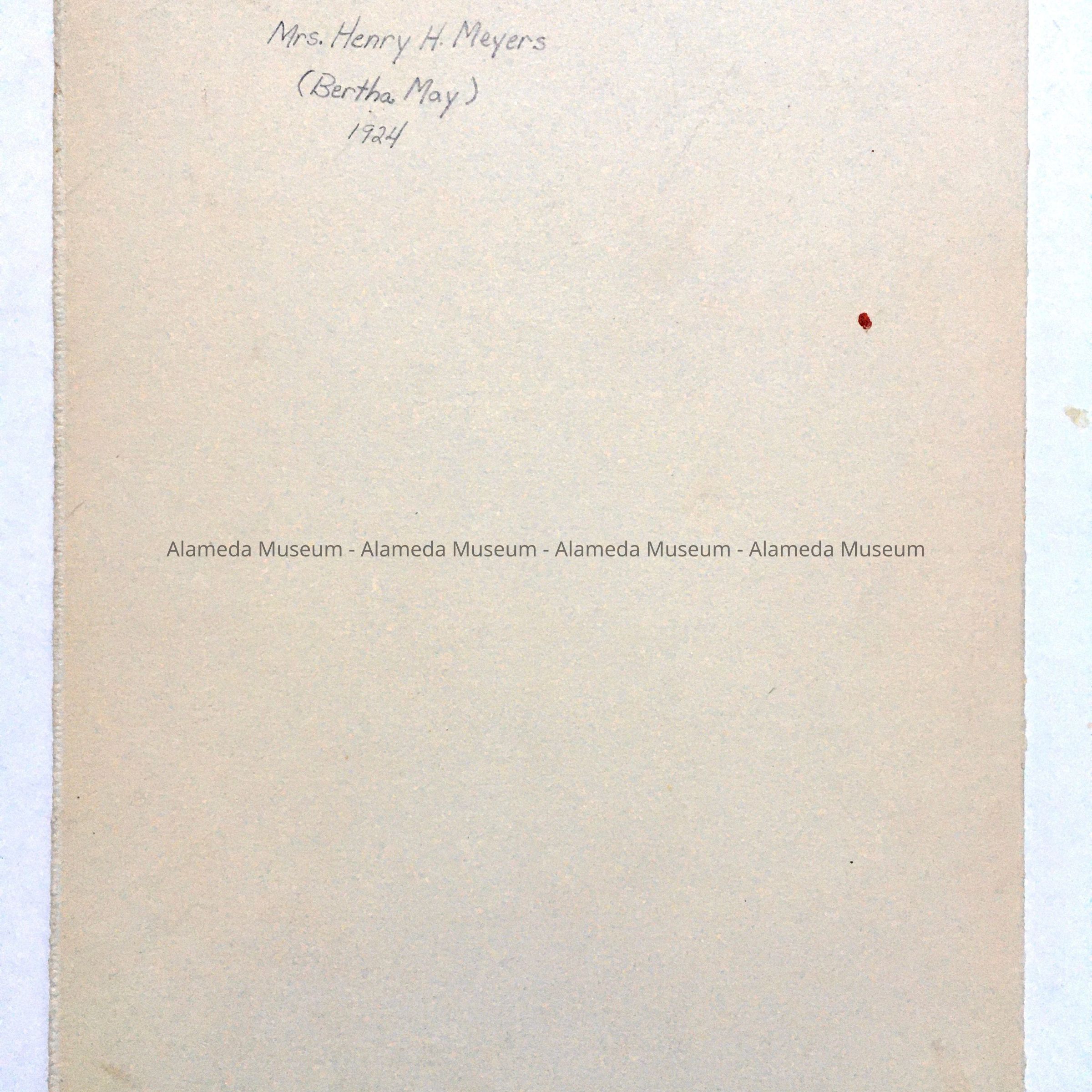 History of Object: A photograph of Bertha (nee May) Meyers, wife of Henry H. Meyers.