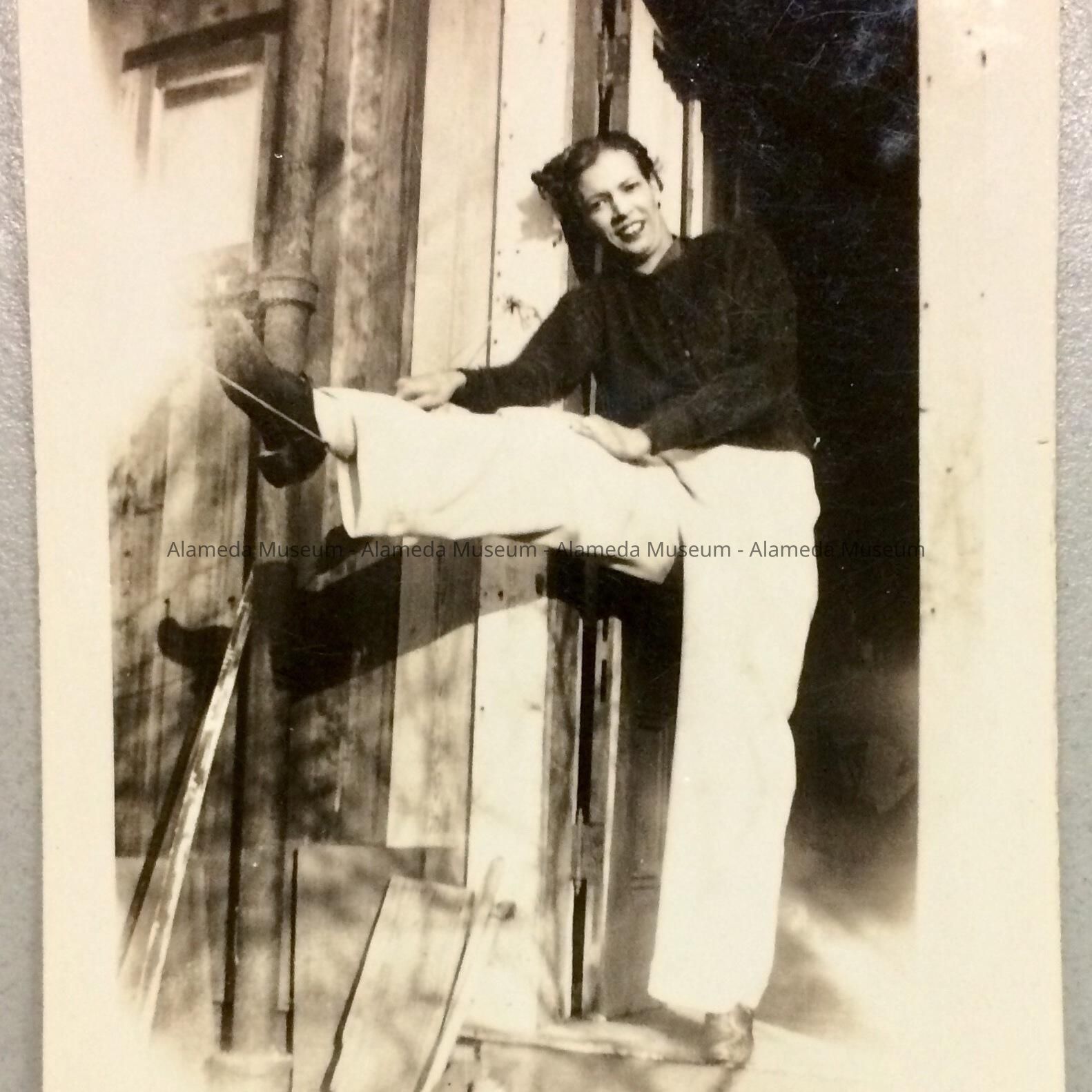 History of Object: Photograph of Bette Clinton at the backdoor of 1525 Morton St. She was a member of an early African-American family of Alameda.