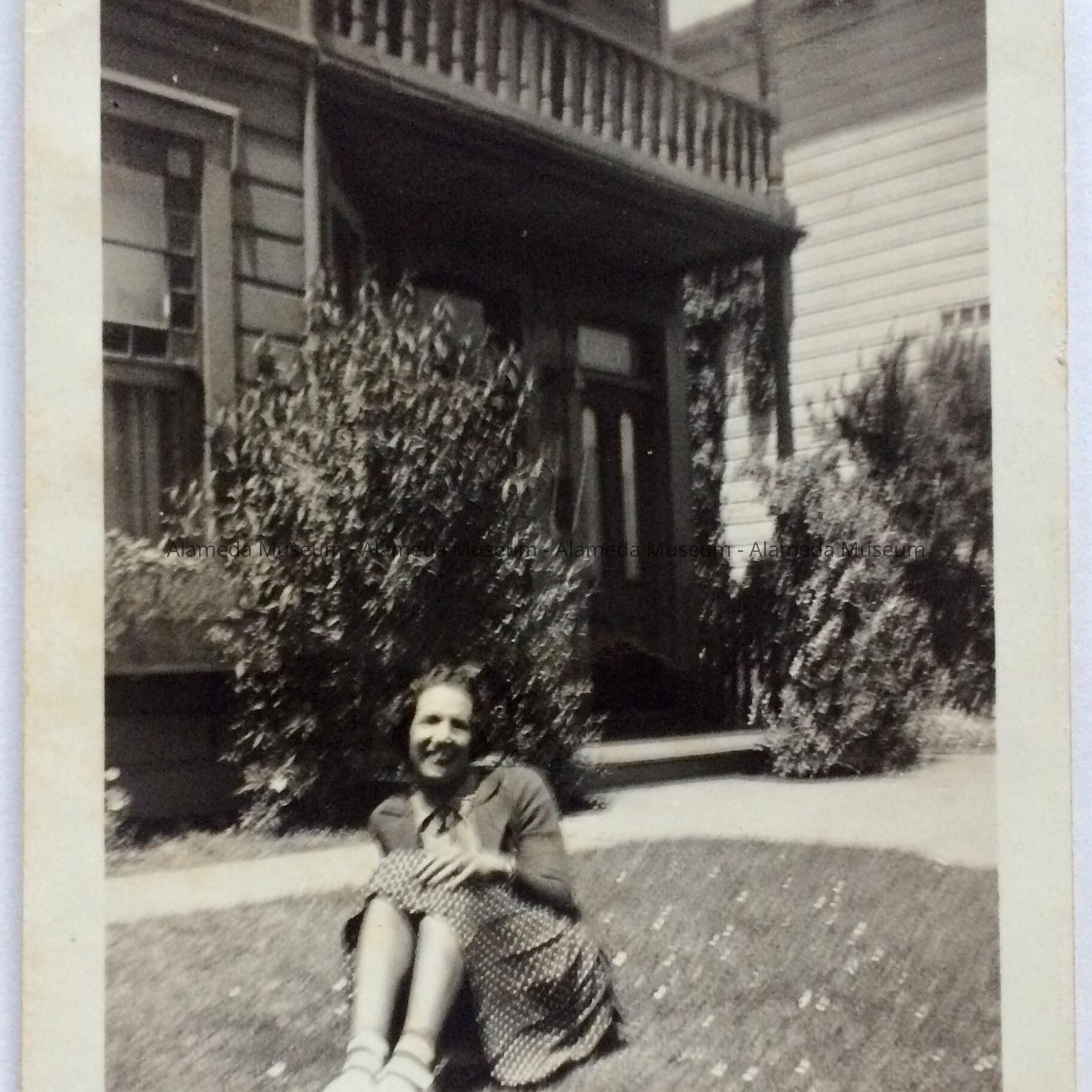 History of Object: Photograph of Bette Clinton in front of 1527 Morton St. She was a member of an early African-American family of Alameda.