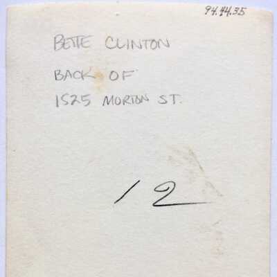 Photo of Bette Clinton in rear portion of 1525 Morton Str., late 1930sEntry/Object ID