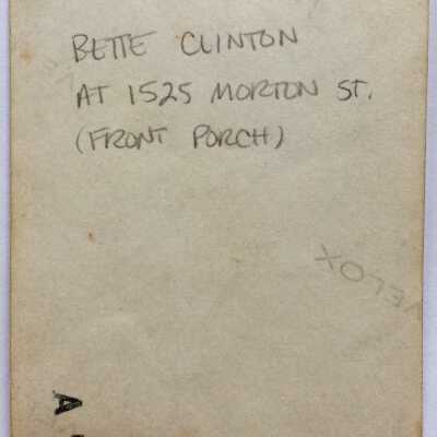 Photo of Bette Clinton on front porch of 1525 Morton Str., c. late 1920sEntry/Object ID