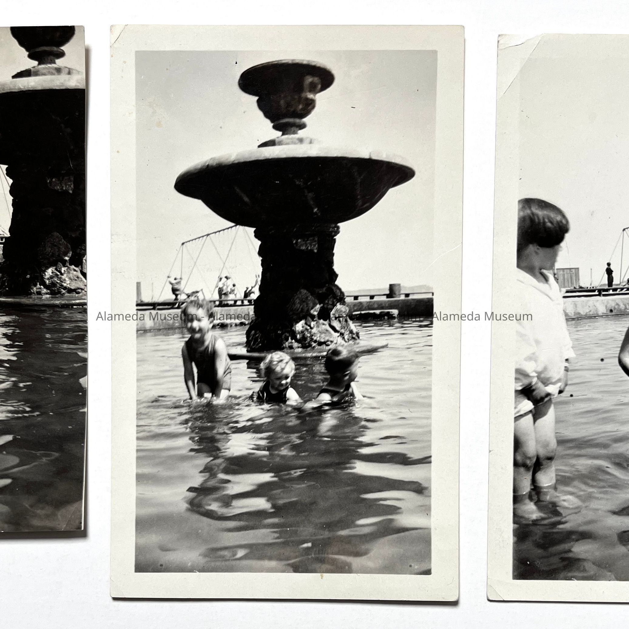 History of Object: Bobby and Betty Matthiesen at play in the children's pool at Neptune Beach. They were living at the Lona Hazard School on Santa Clara Ave. where their grandmother, Mrs. Rose, was the school cook.