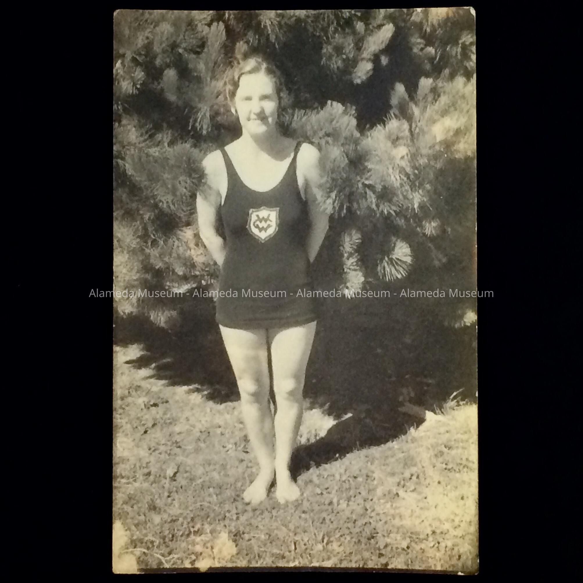 A PHOTO OF BUNNY FERGUS, CLAD IN HER BATHING SUIT. SHE WAS A CHAMPION SWIMMER AND A RESIDENT OF ALAMEDA.