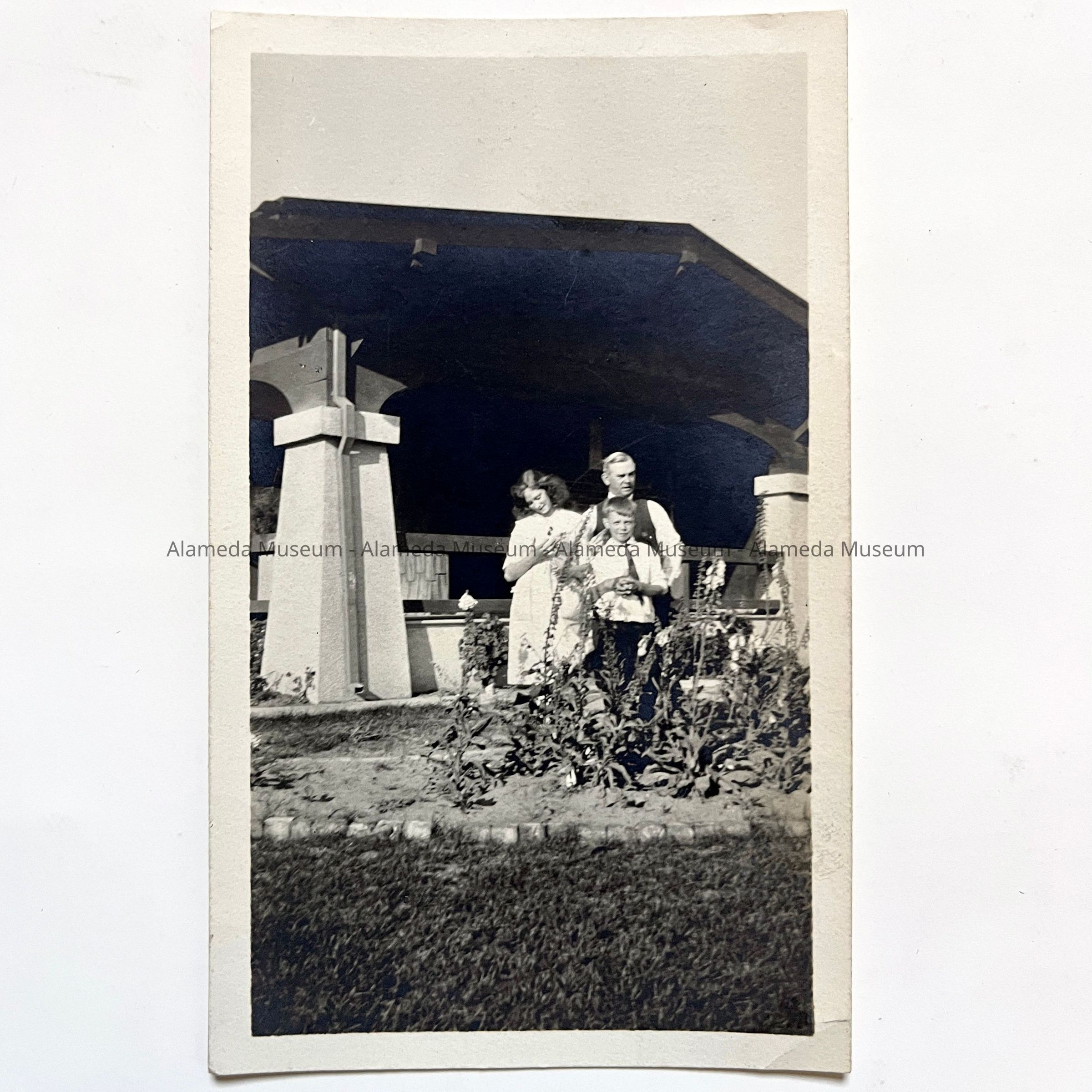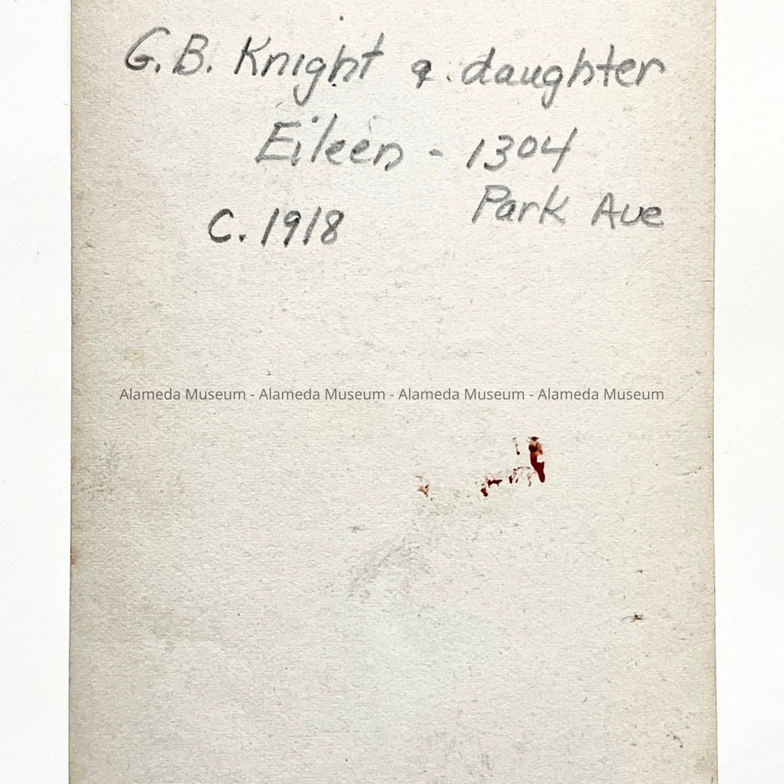 PHOTOGRAPH OF CAPT G B KNIGHT AND DAUGHTER, EILEEN, IN FRONT OF 1304 PARK AVENUE, ALAMEDA, CALIFORNIA.