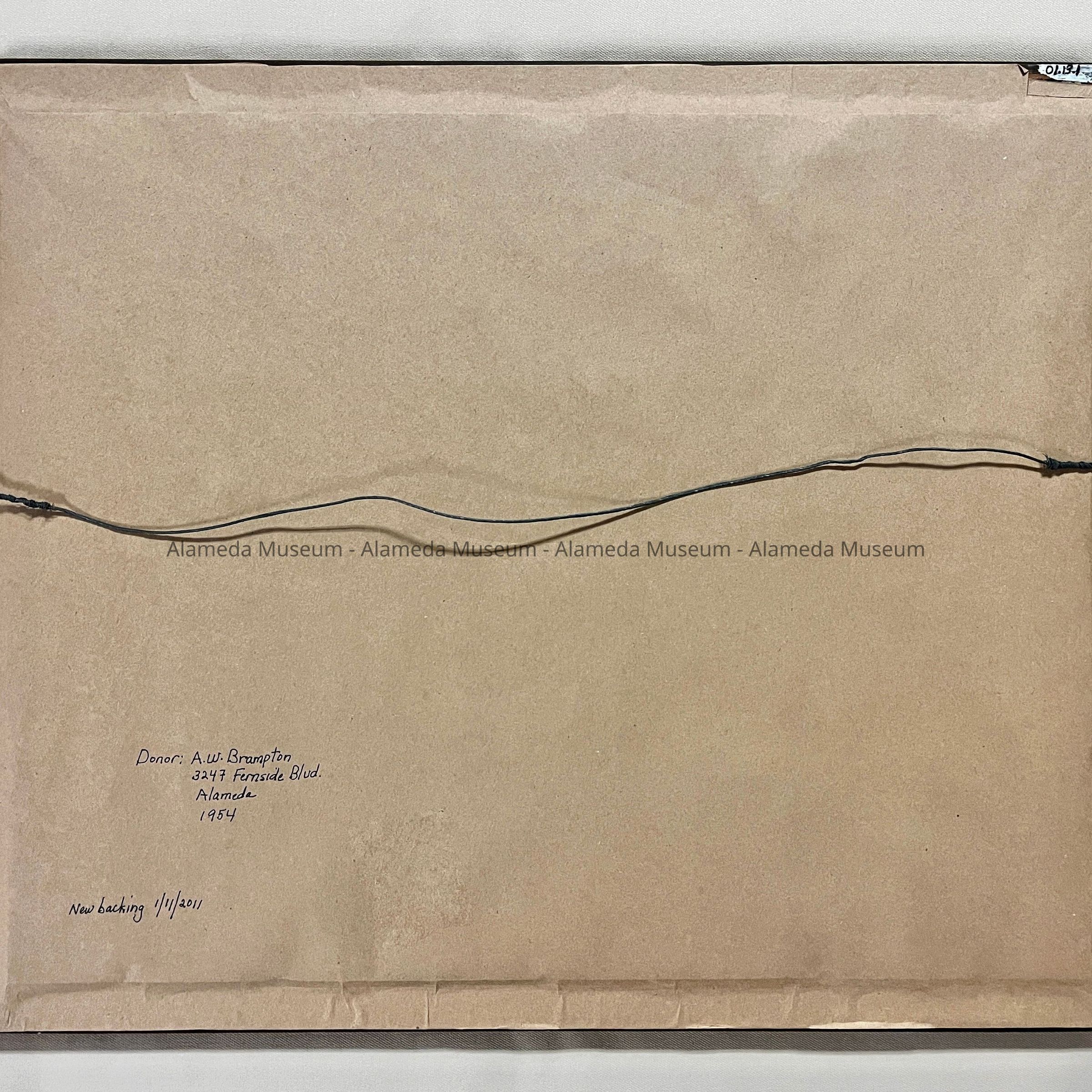 THE FRAMED PHOTO WAS GIVEN TO THE ALAMEDA HISTORICAL MUSEUM IN 1954 BY A W BRAMPTON, A MEMBER OF THE CREW. OBJECT WAS NUMBERED "410X" AND NOT PREVIOUSLY CATALOGED.