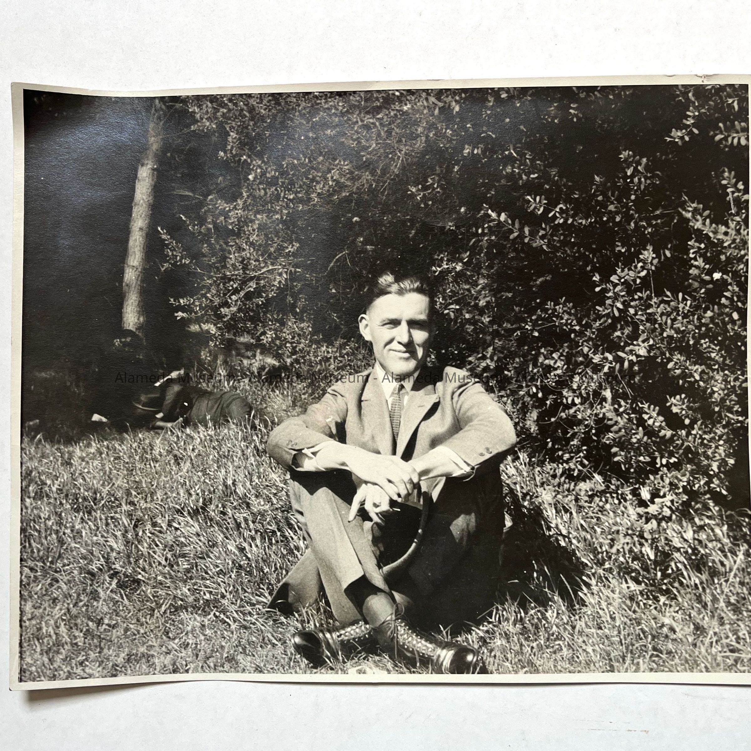 Photo of Charles W. Martin in a suit, seated on a lawn, c. 1940sEntry/Object ID