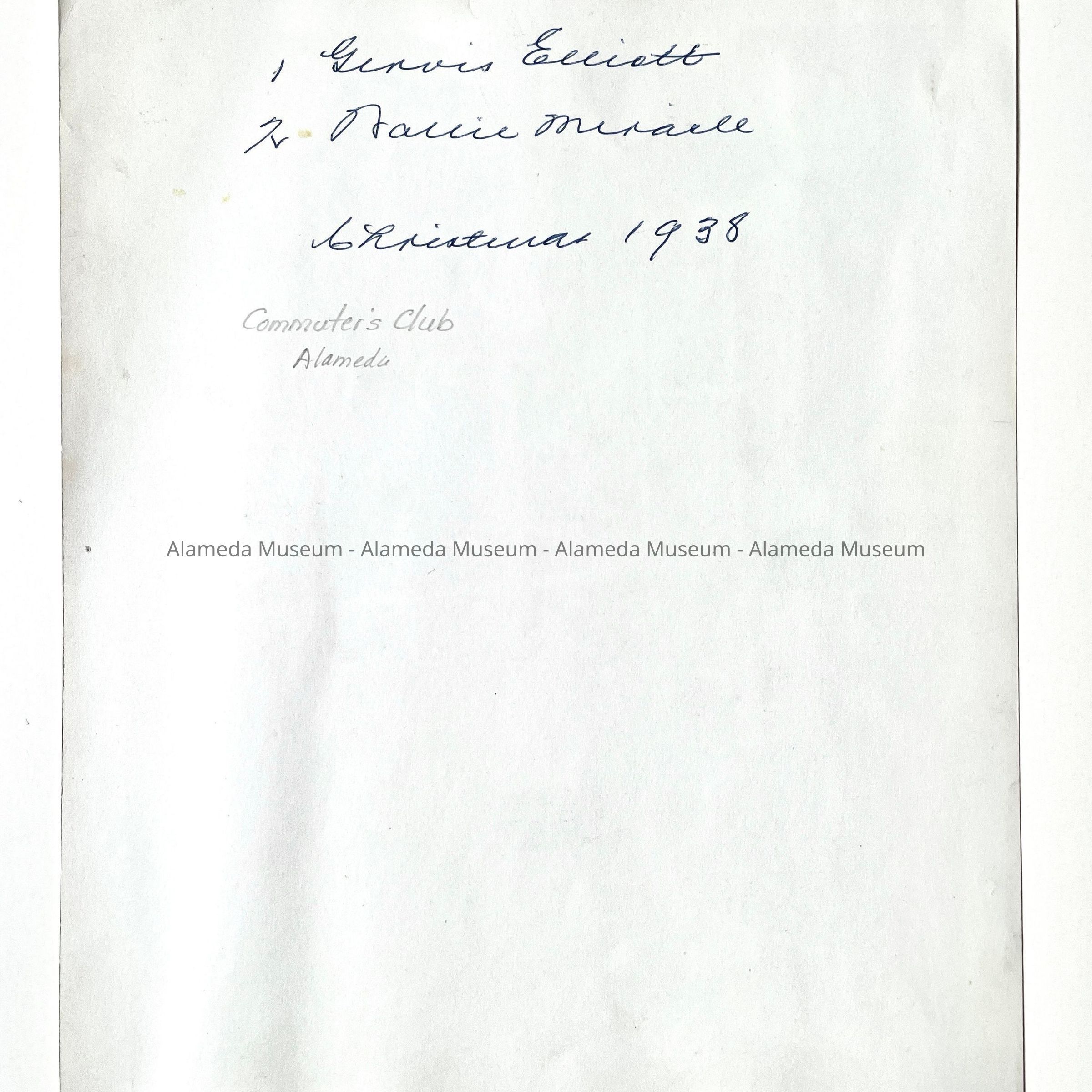 PHOTOGRAPH OF THE LATE WALLACE D MIRACLE AND OTHER COMMUTERS, TAKEN ABOARD A FERRY EN ROUTE TO SAN FRANCISCO, BELOW THE BAY BRIDGE. THE EVENT WAS A CHRISTMAS PARTY ABOARD ONE OF THE FERRY BOATS IN 1938.
