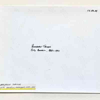 Photo of councilmember Barbara Thomas (1987-1991) with toddlers, c. 1990sEntry/Object ID