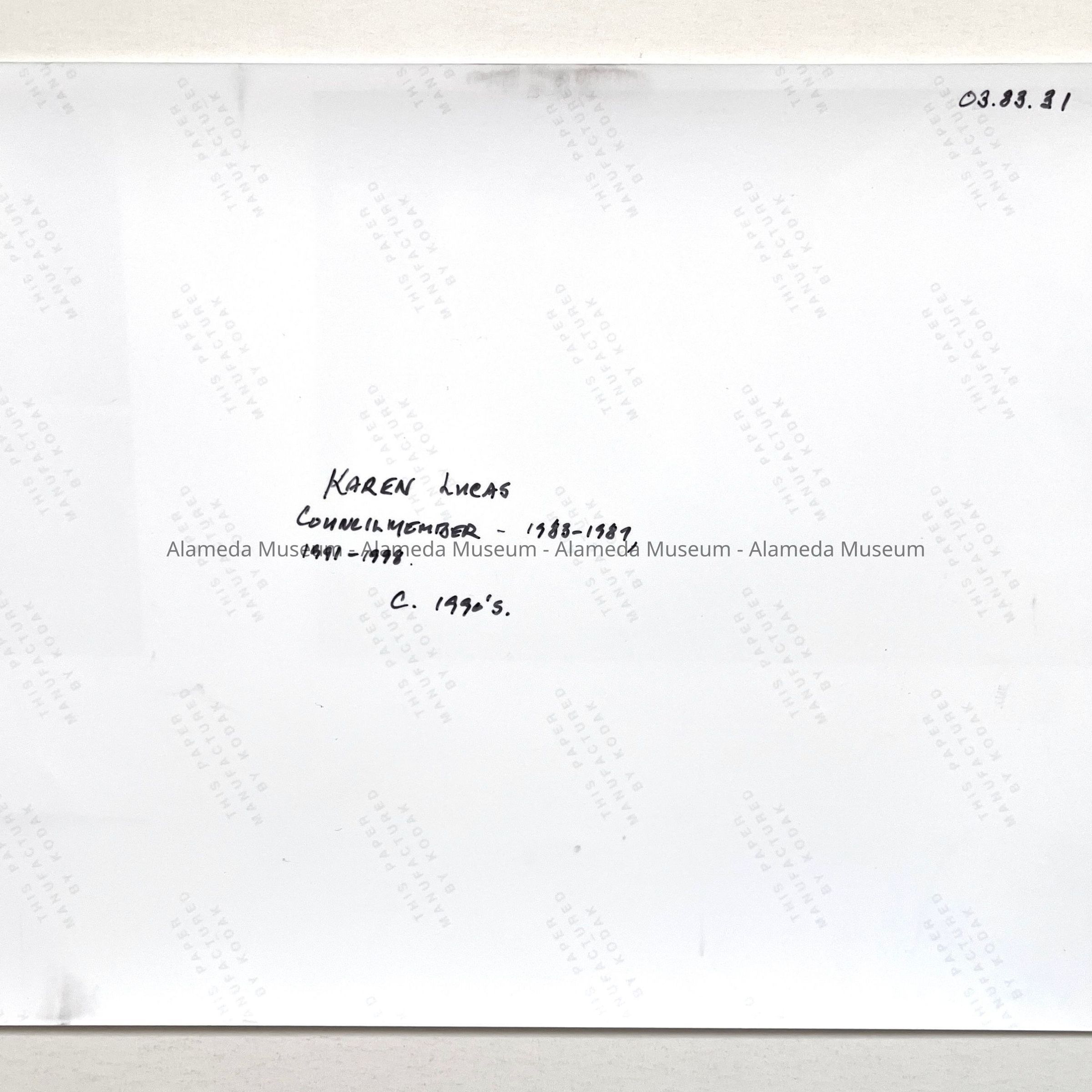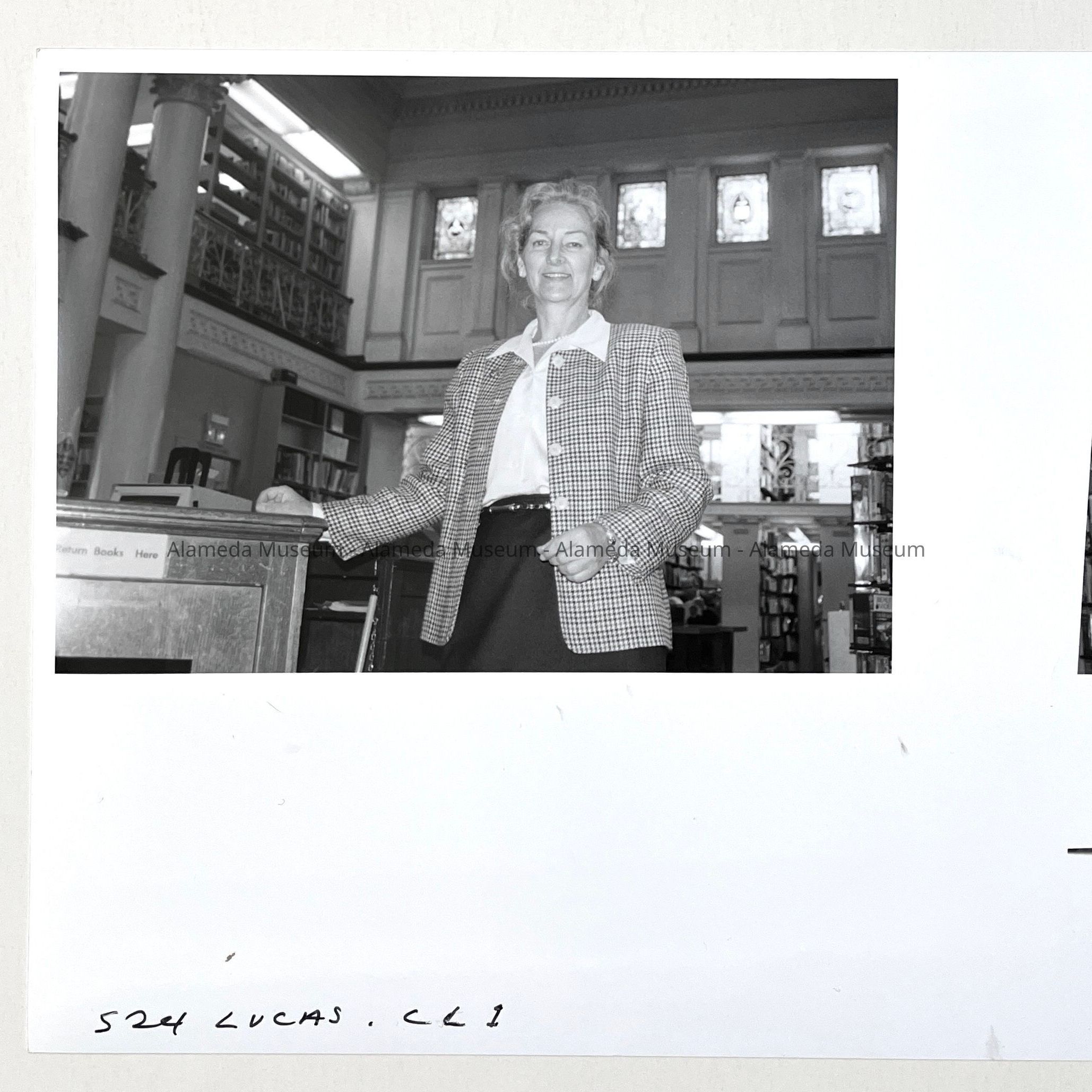 Photo of councilmember Karin Lucas in the Carnegie Library, c. 1990sEntry/Object ID