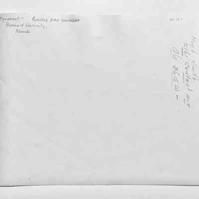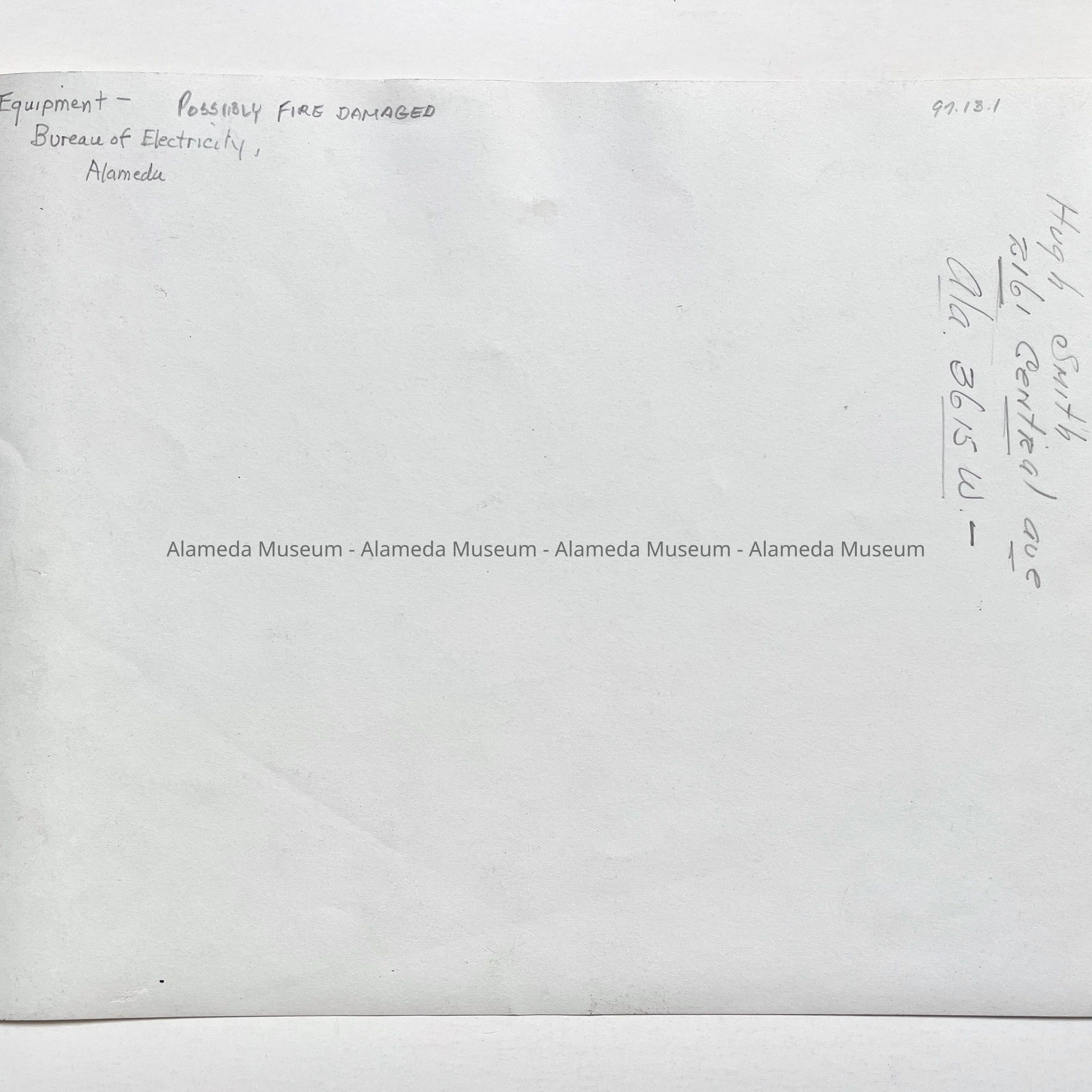 History of Object: View of Alameda Bureau of Electricity equipment, apparently damaged by fire.