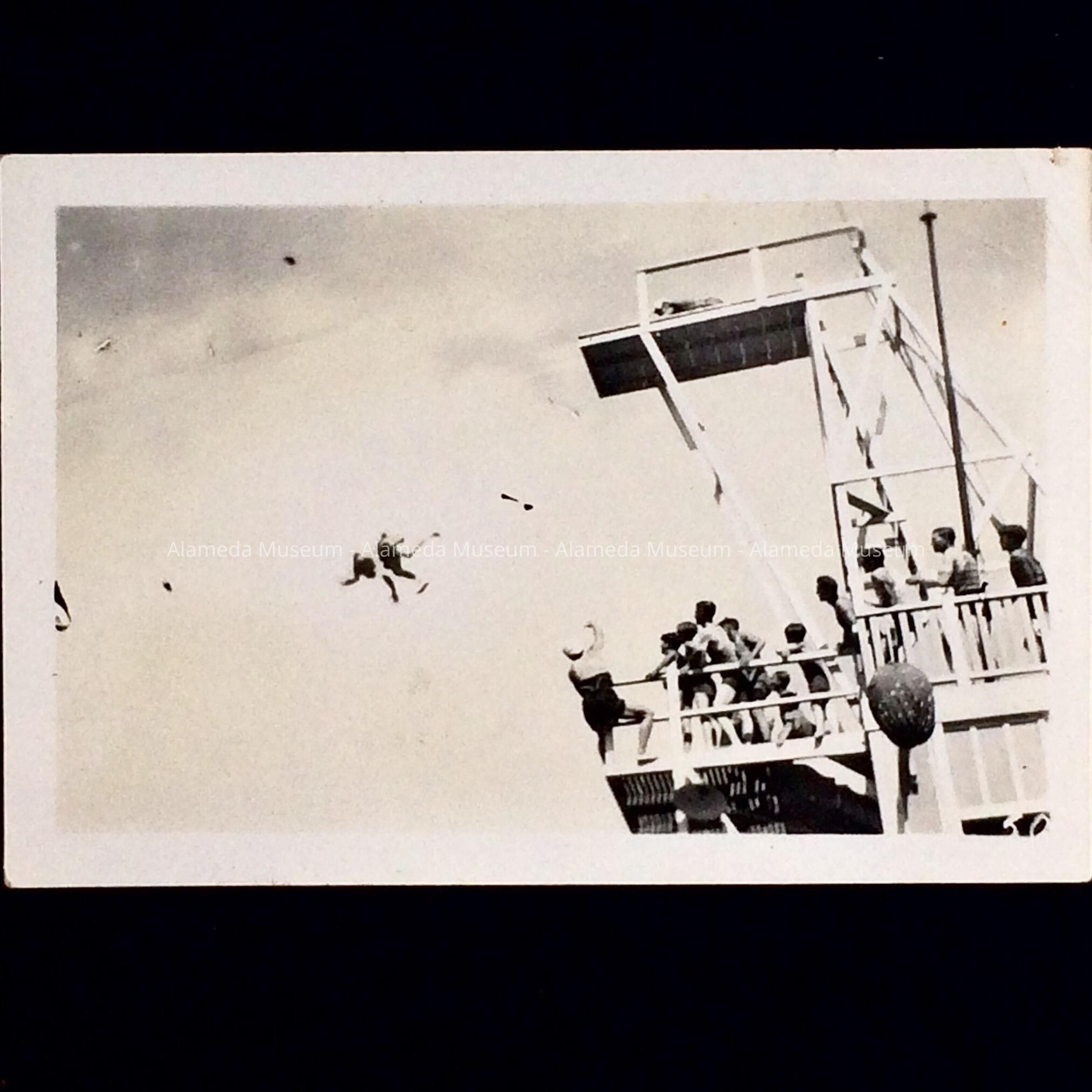 A PHOTO SHOWING DETAILS OF THE HIGH DIVING BOARD, NEPTUNE BEACH, ALAMEDA, CALIFORNIA.