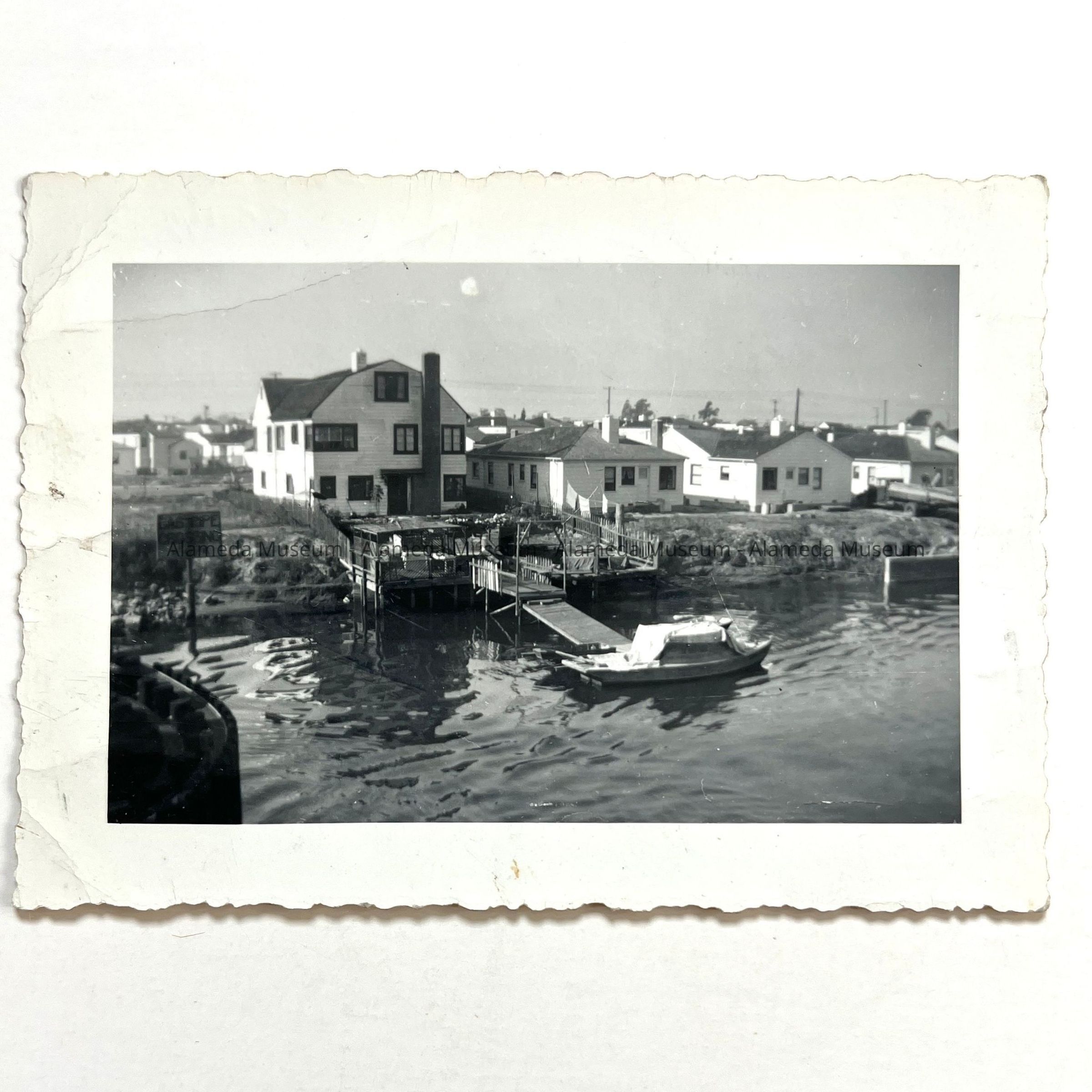 History of Object: View of docking facilities on the Estuary of a home located at 3127 Marine Drive.