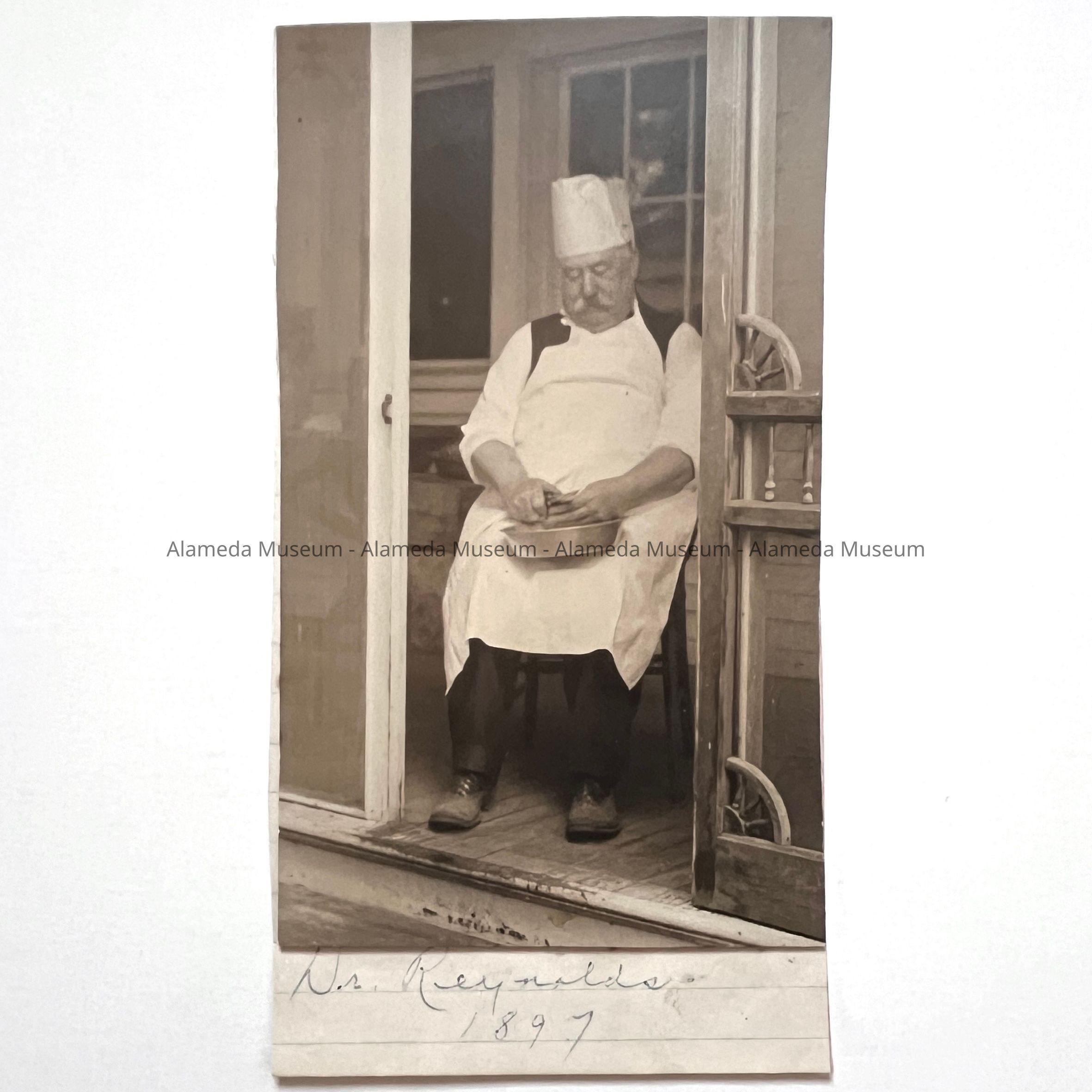 Photo of Dr. George P. Reynolds, physician, peeling potatoes, 1897Entry/Object ID