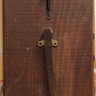 Sepia tinted photo under glass in easel type frame with wood backing.