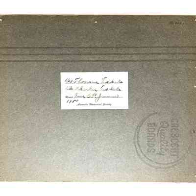Description: Glossy black/white photocopy of a vintage print. Photographer unknown. Mounted on black paperboard, with several nail holes along the edge of same. Also, a typed description label is affixed to the bottom central margin of the mounting, and an old cataloging label is glued to the upper right corner of same.