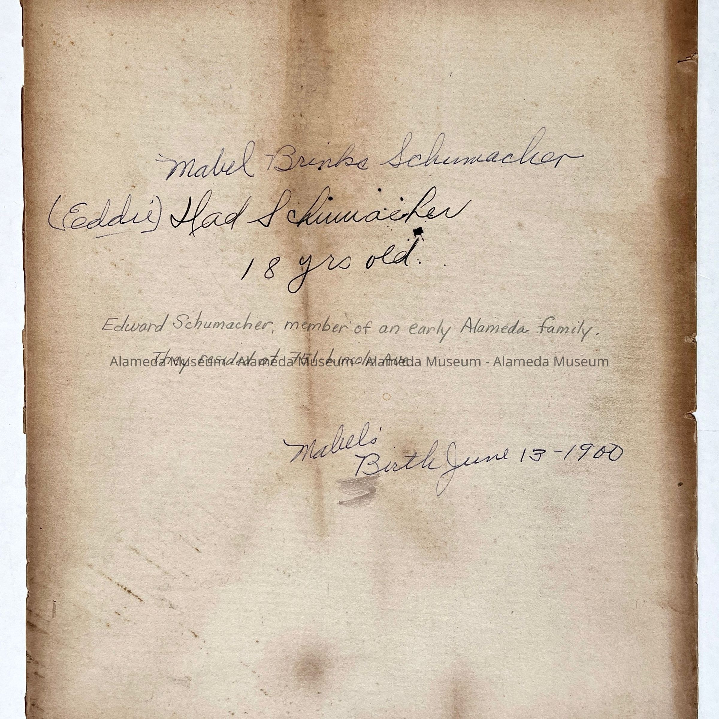 PHOTO OF EDWARD SCHUMACHER, MEMBER OF AN EARLY ALAMEDA FAMILY. THE FAMILY RESIDED AT 751 LINCOLN AVENUE.