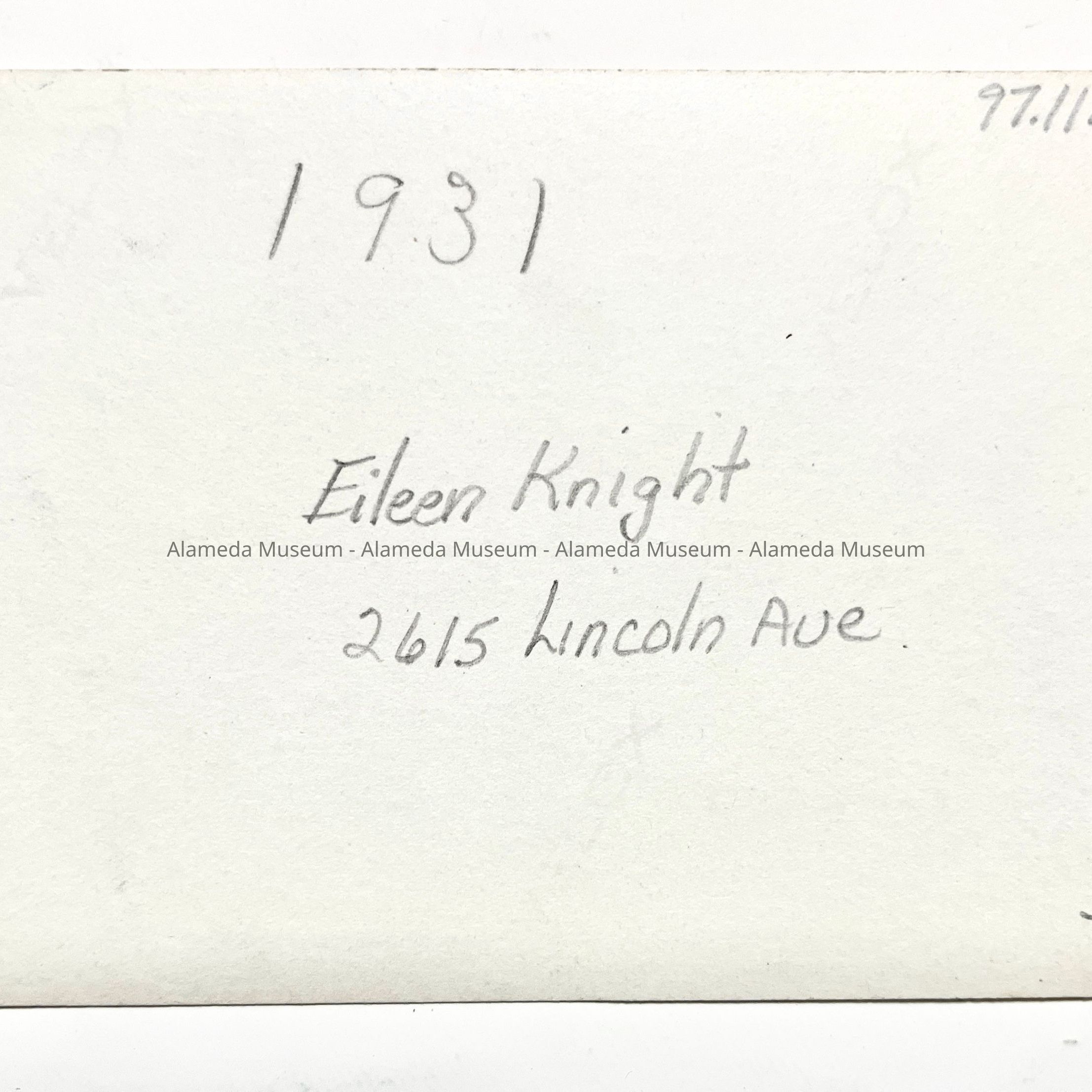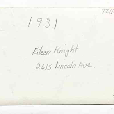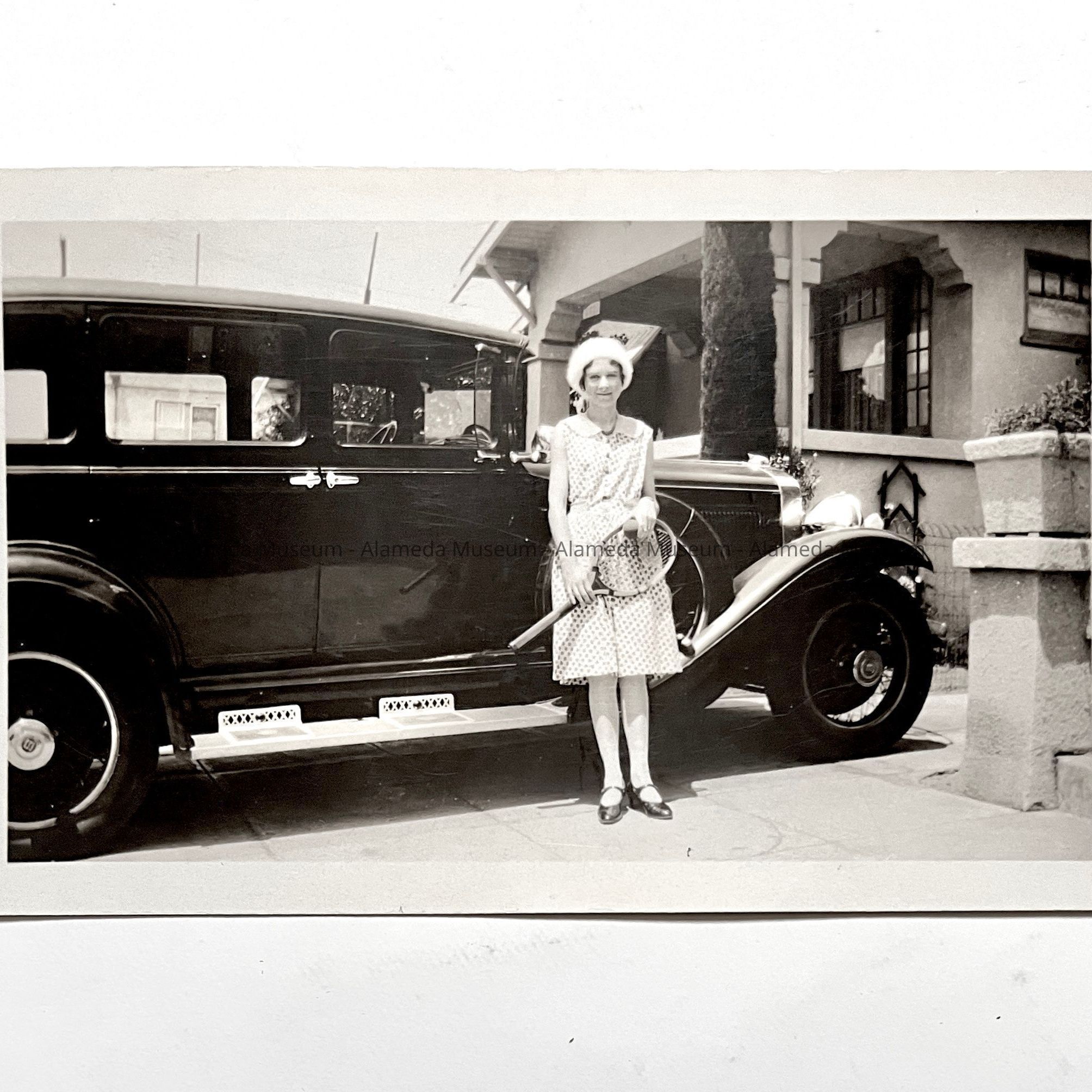 Photo of Eileen Knight in a car in the driveway of 2615 Lincoln Ave, 1931Entry/Object ID