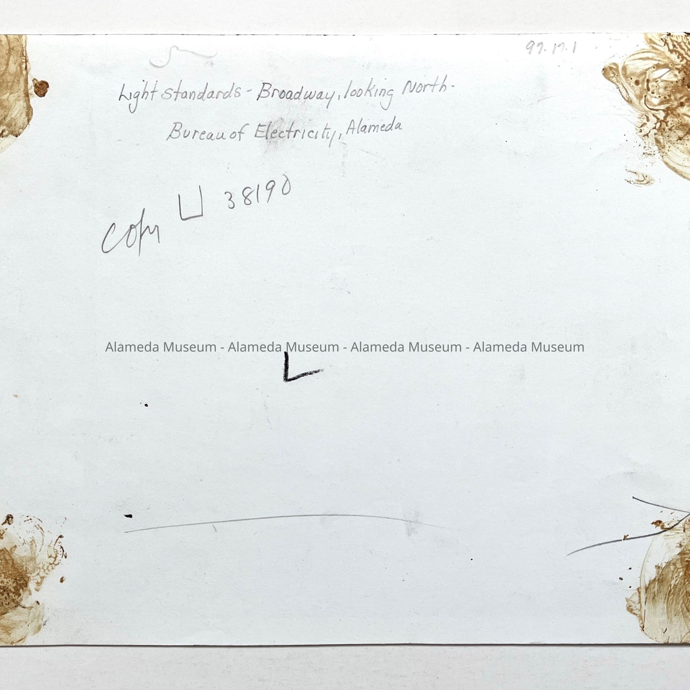Photo of electric light standards on Broadway, looking north, c. 1920sEntry/Object ID