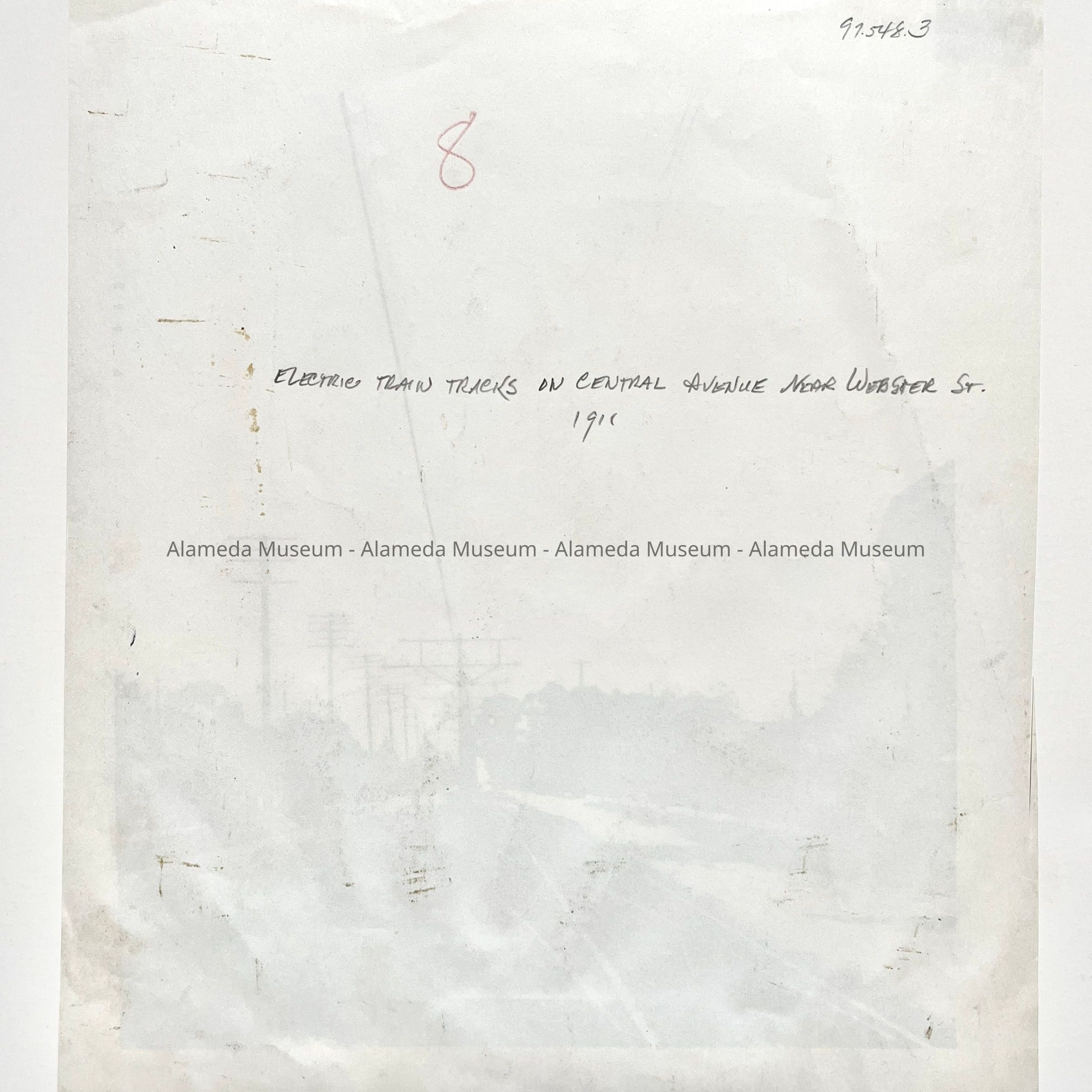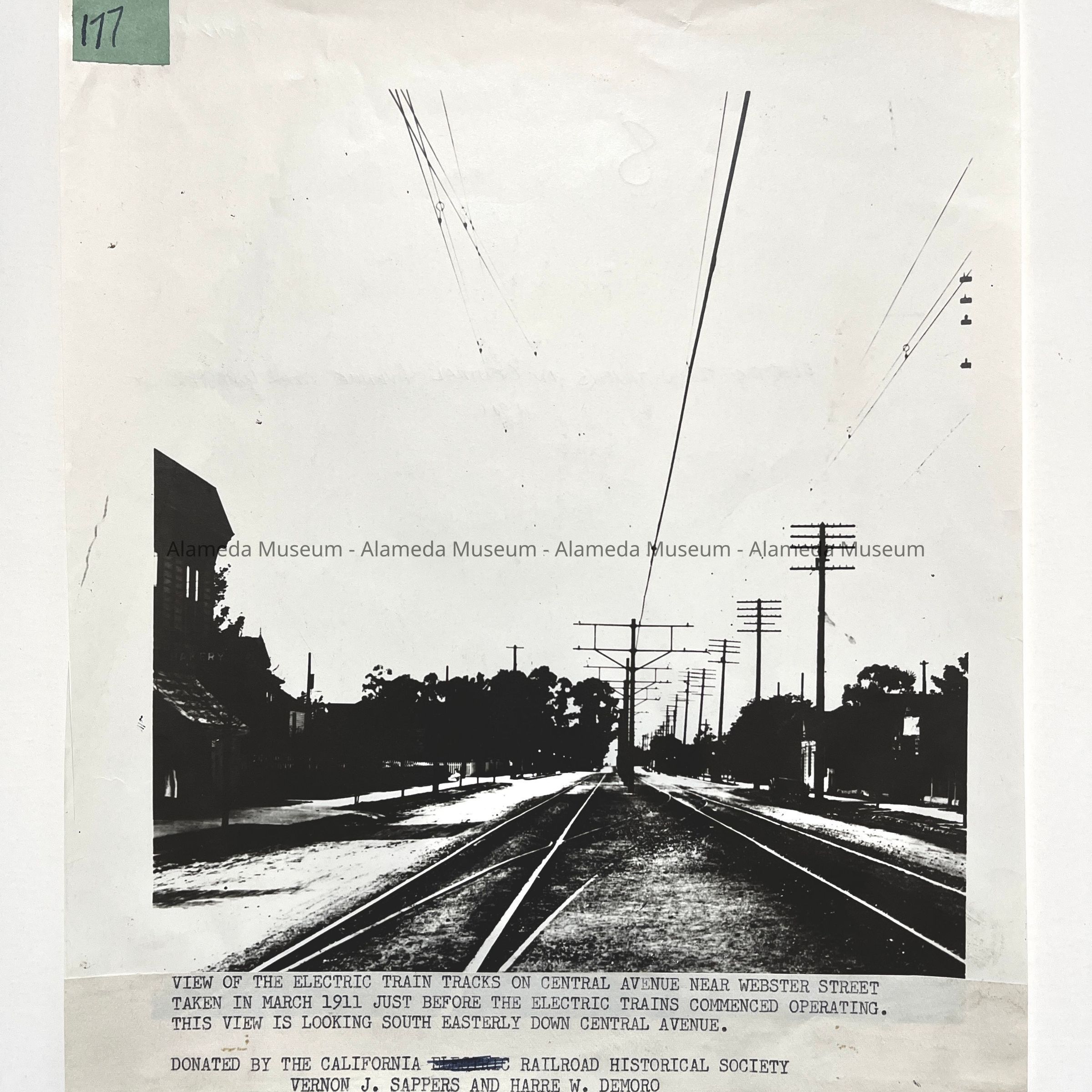 History of Object: View of the electric train tracks on Central Avenue, near Webster Street, March, 1911.