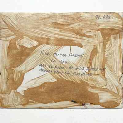 Description: Black/white photo, unmounted. Photographer unknown. Glue from verso penetrates image. A short notation in blue ink is written onto the image.
