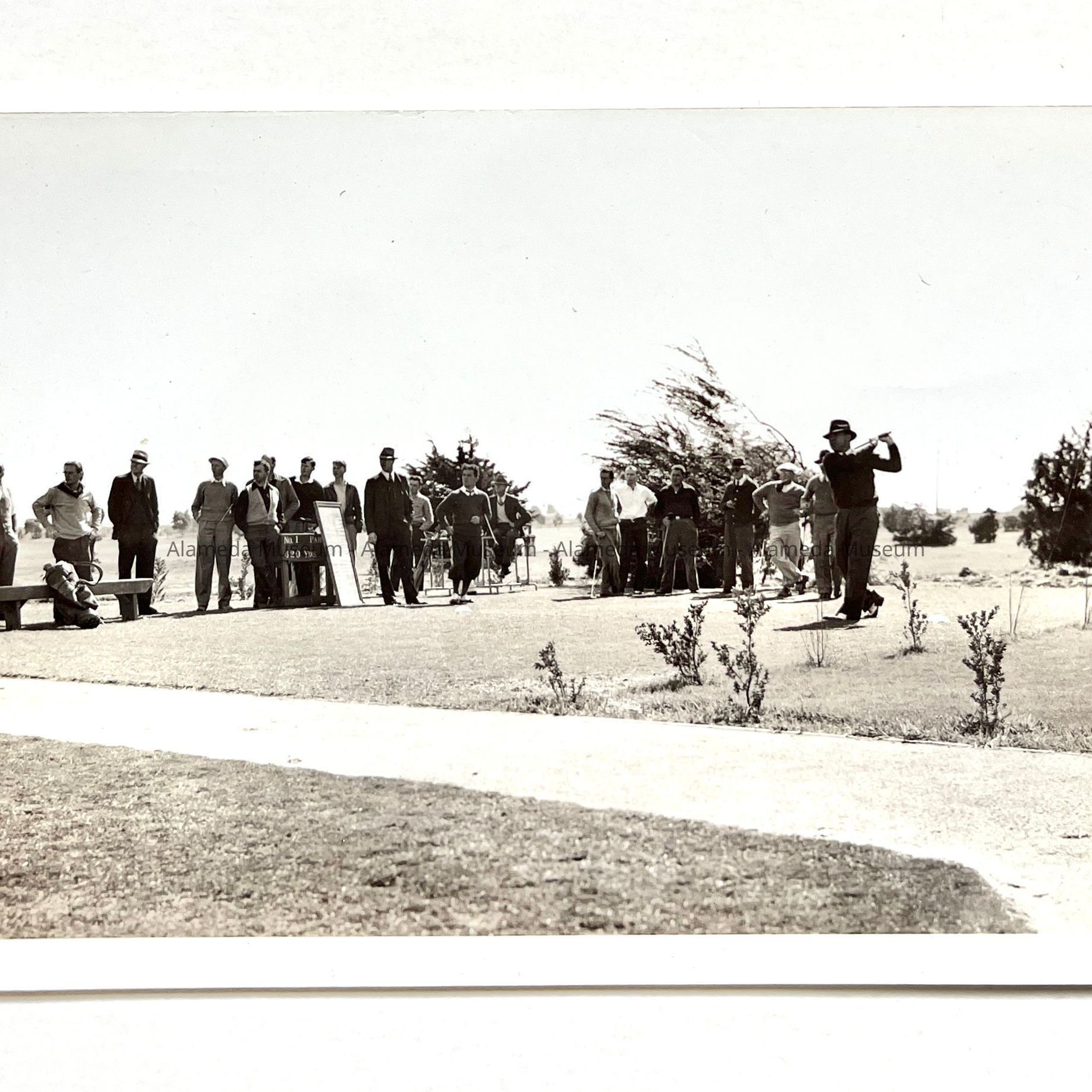 A PHOTOGRAPH OF UNIDENTIFIED GOLFERS AT THE ALAMEDA MUNICIPAL GOLF COURSE,
