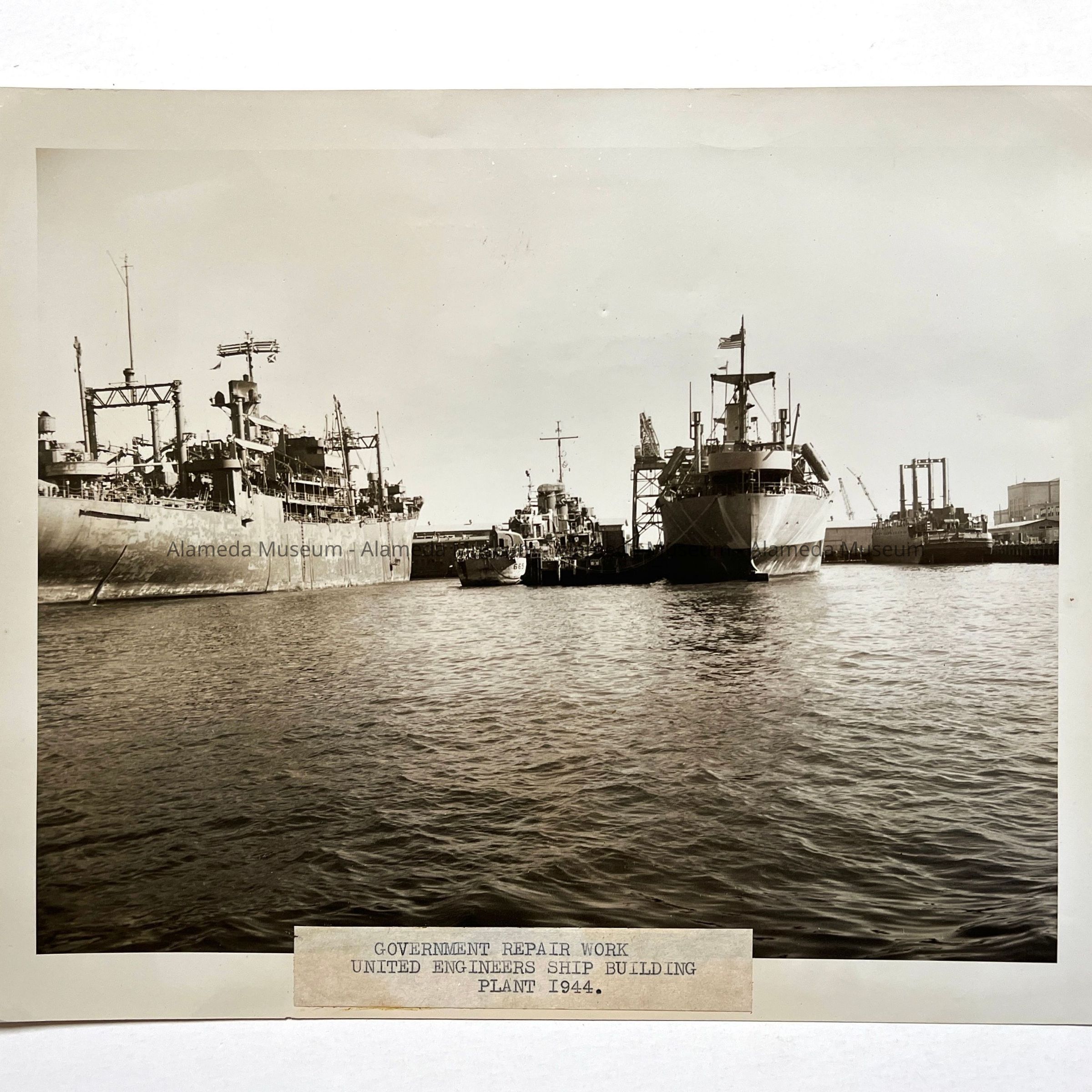 Photo of government vessels under repair, United Engineering Works, 1944Entry/Object ID
