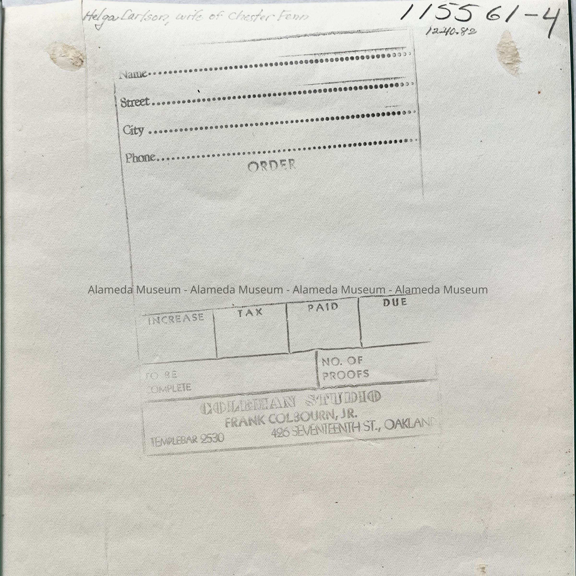 Description: Black and white matte finish photograph signed on the reverse by Coleman Studios of 7th Street Oakland.