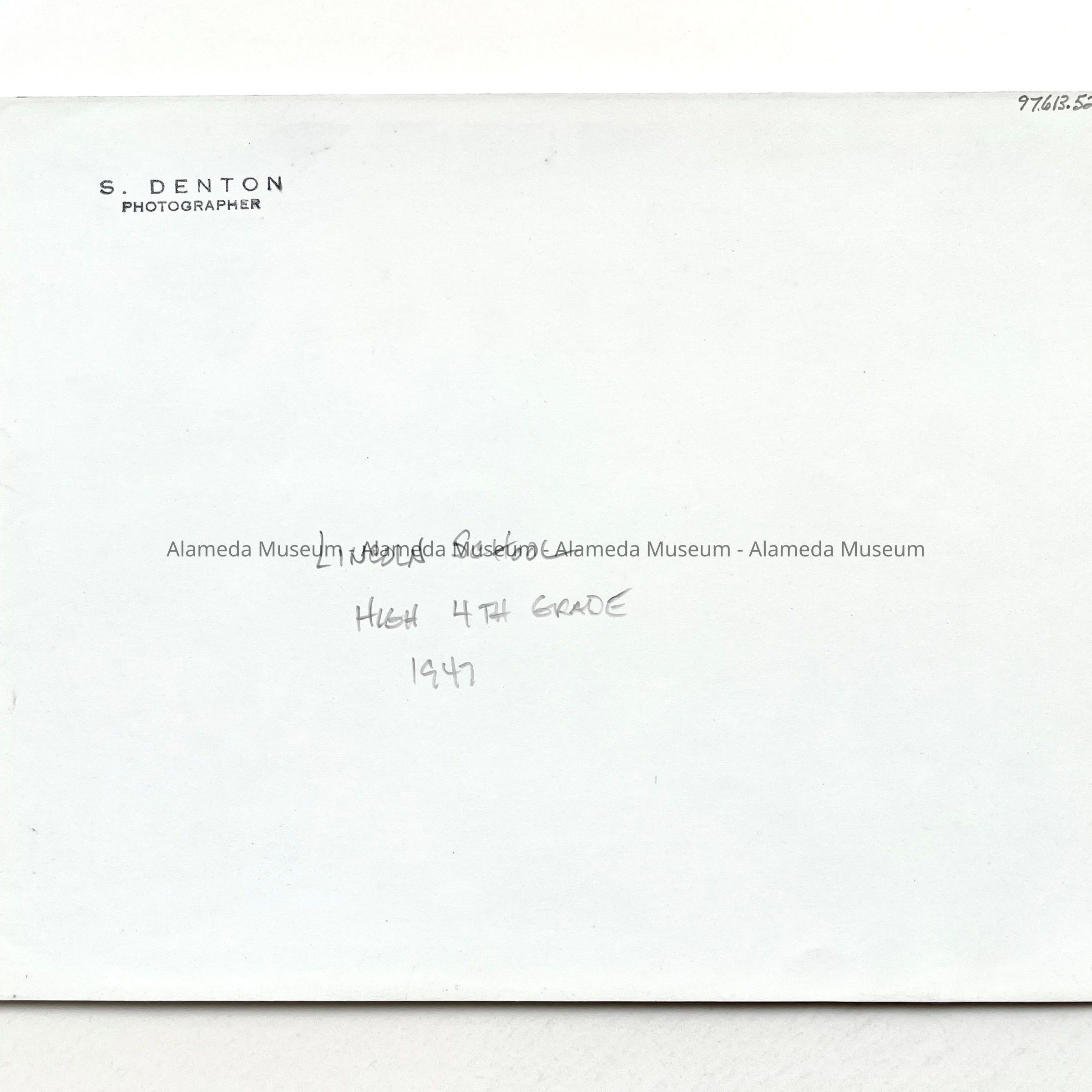 BLACK -AND-WHITE GLOSSY PHOTOGRAPH, SIGNED, "S DENTON, PHOTOGRAPHER," ON THE REVERSE SIDE.
