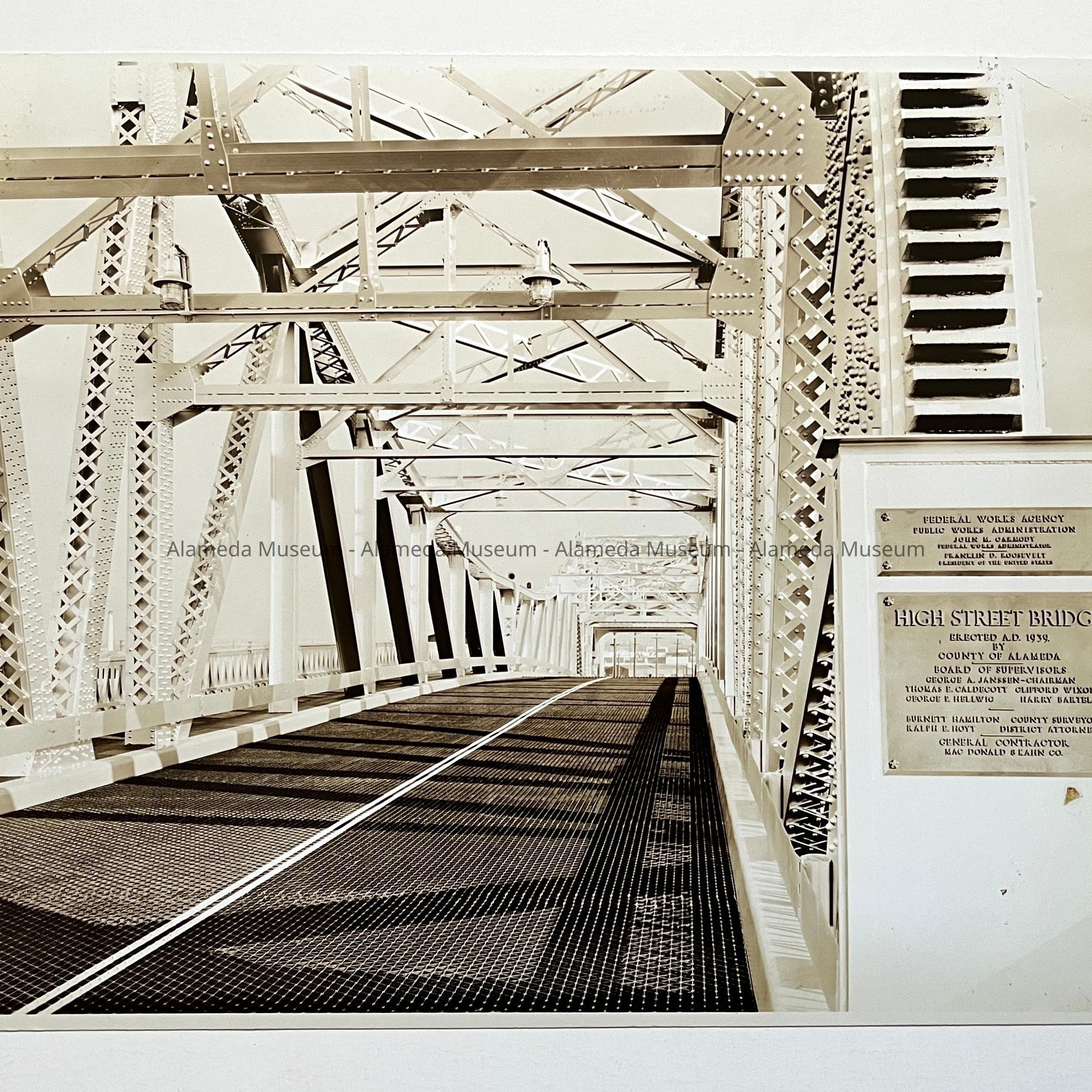 History of Object: View of the new High Street Bridge looking toward Oakland, showing the dedicatory bronze plaques affixed to it.