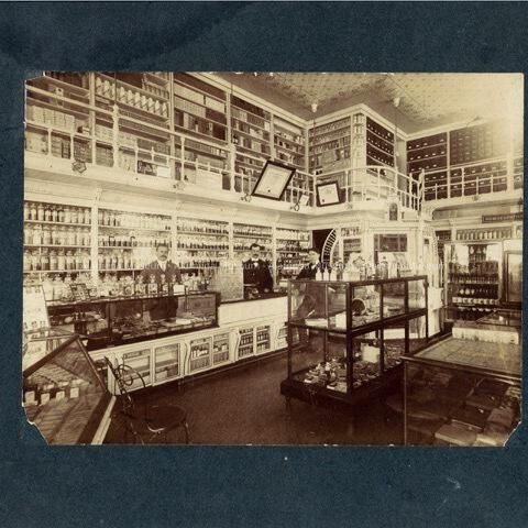 Photo of interior of a pharmacy, c. 1898Entry/Object ID