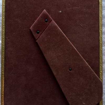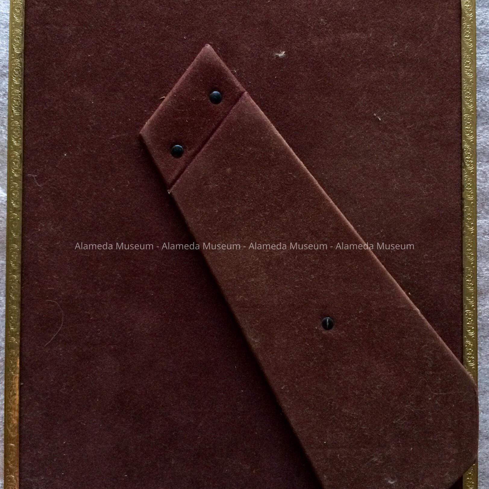 A BLACK-AND-WHITE PHOTOGRAPH MOUNTED ON TAN-COLORED PAPER IN A GOLD-PLATED BRASS FRAME. FRAME HAS AN EASEL-TYPE BACKING. PHOTOGRAPH IS SIGNED, "MISSES SPENCER AND STOLTE, ALAMEDA."