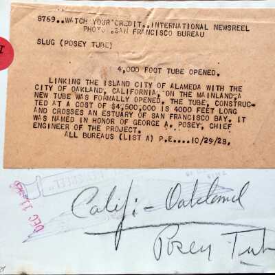Photo of last stages construction of the Posey Tube, 1928Entry/Object ID