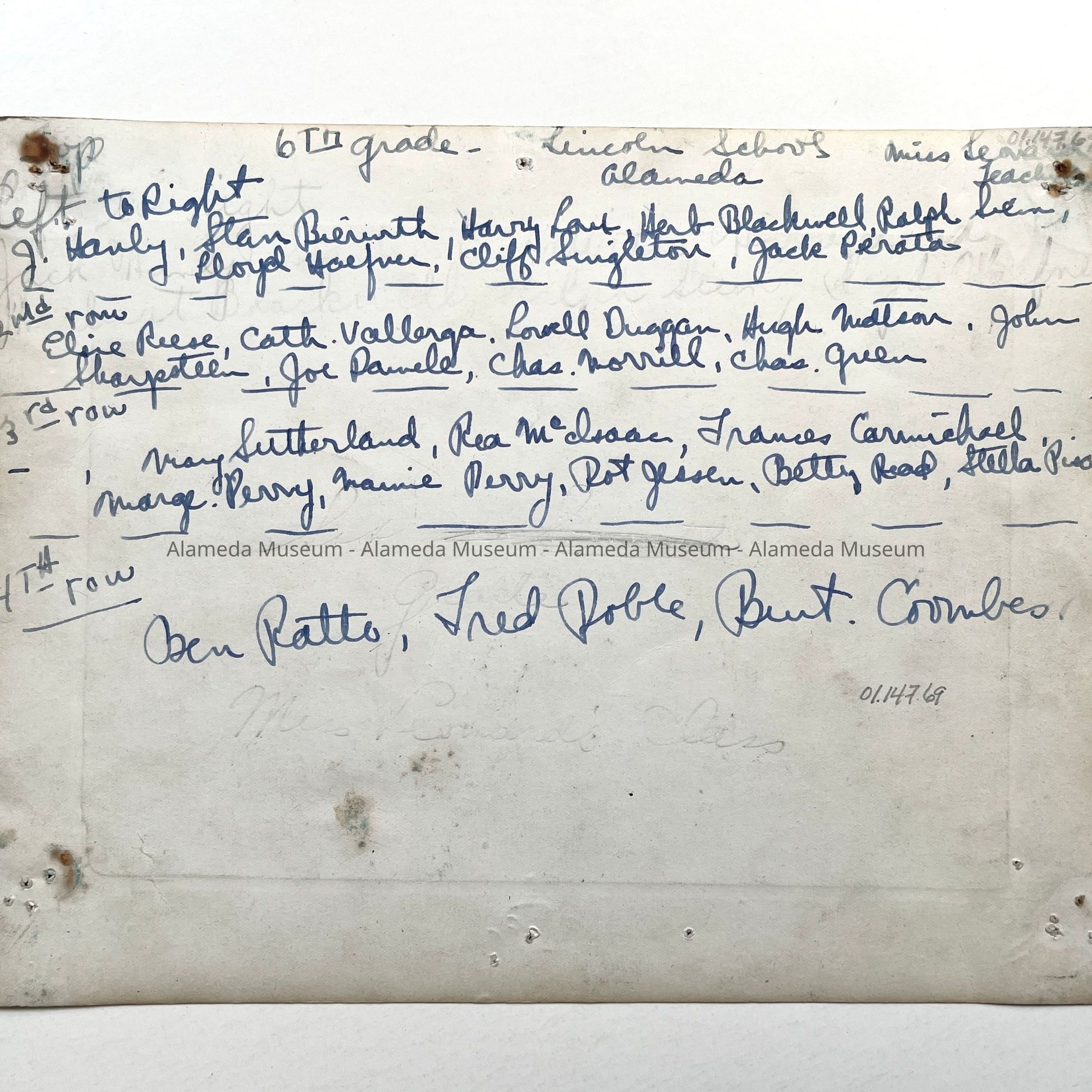 PHOTOGRAPH OF THE SIXTH-GRADE CLASS, LINCOLN SCHOOL. JACK HANLY, LATE HUSBAND OF THE DONOR, WAS A MEMBER OF THE CLASS.
