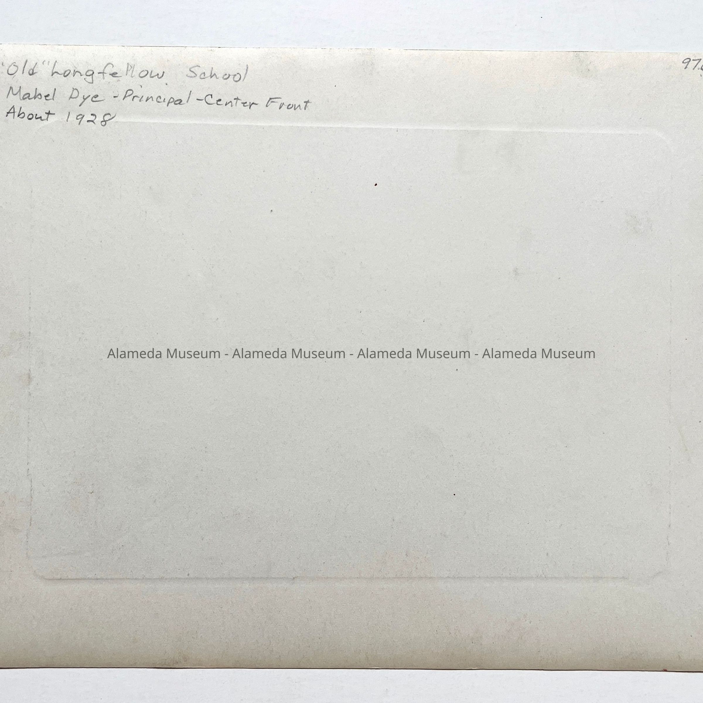 PHOTOGRAPH OF THE LONGFELLOW SCHOOL FACULTY. MABEL DYE, PRINCIPAL, IS PICTURED @ CENTER FRONT (ABOUT 1928).