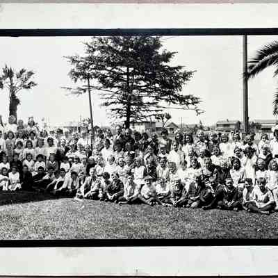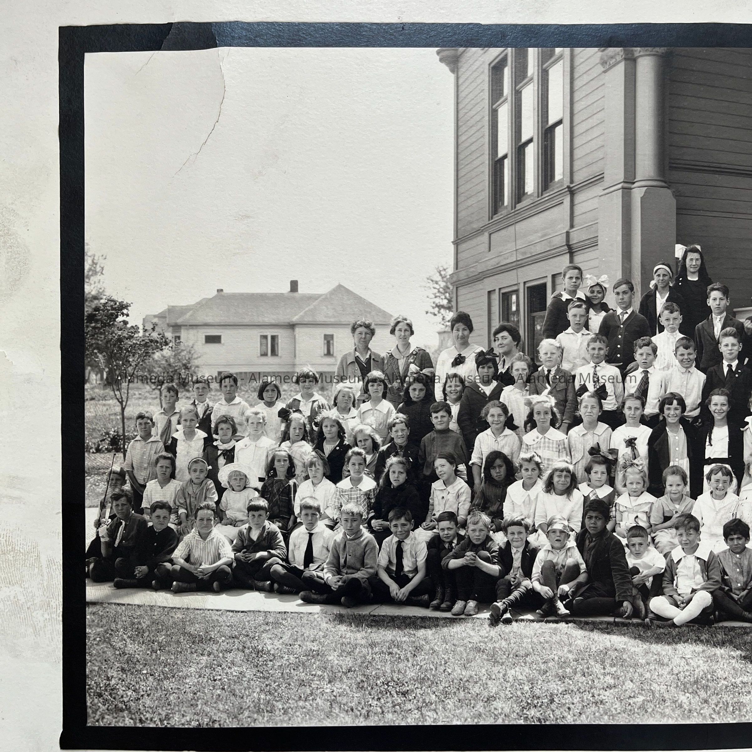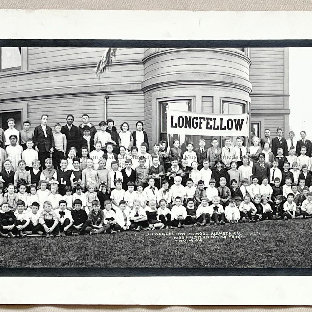History of Object: Student Body of Longfellow School posed outdoors for a group portrait.